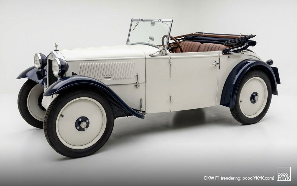 The DKW F1 is a small front-wheel-drive automobile introduced in 1931 by DKW, one of the four founding brands of Auto Union. Presented at the 1931 Internationale Automobil-Ausstellung (IAA) in Berlin, it was the first series-produced DKW passenger car with front-wheel drive and became a cornerstone of the company’s pre-war success. The F1 played a central role in securing the financial stability of Audi Werke AG during the early years of the Great Depression and ultimately evolved into one of the most prolific model lines within Auto Union before the Second World War.