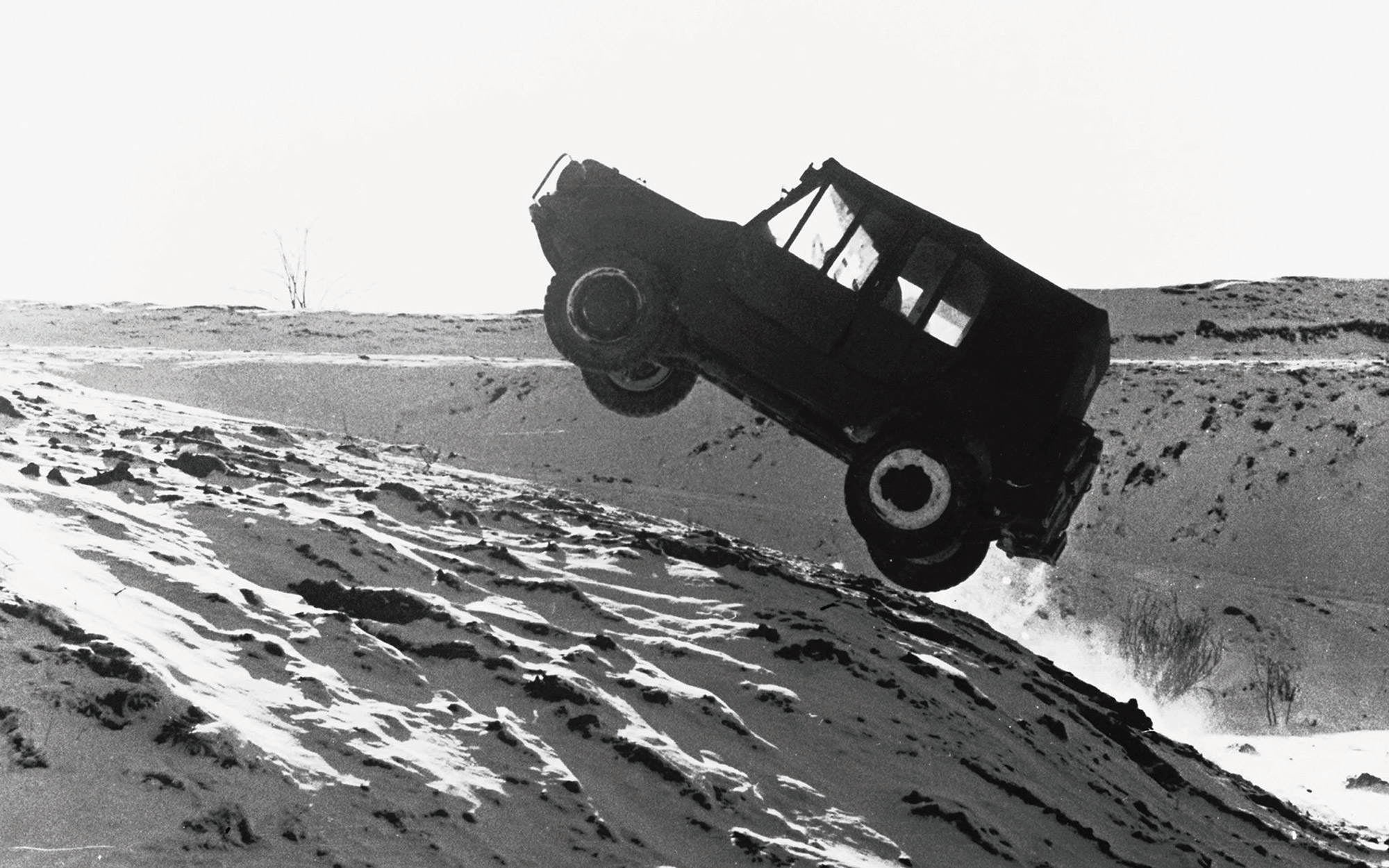 Transmission: 3-speed manual standard, 4-speed optional, plus permanent 4WD with a dashboard-controlled reduction gear for ultra-low crawling)
