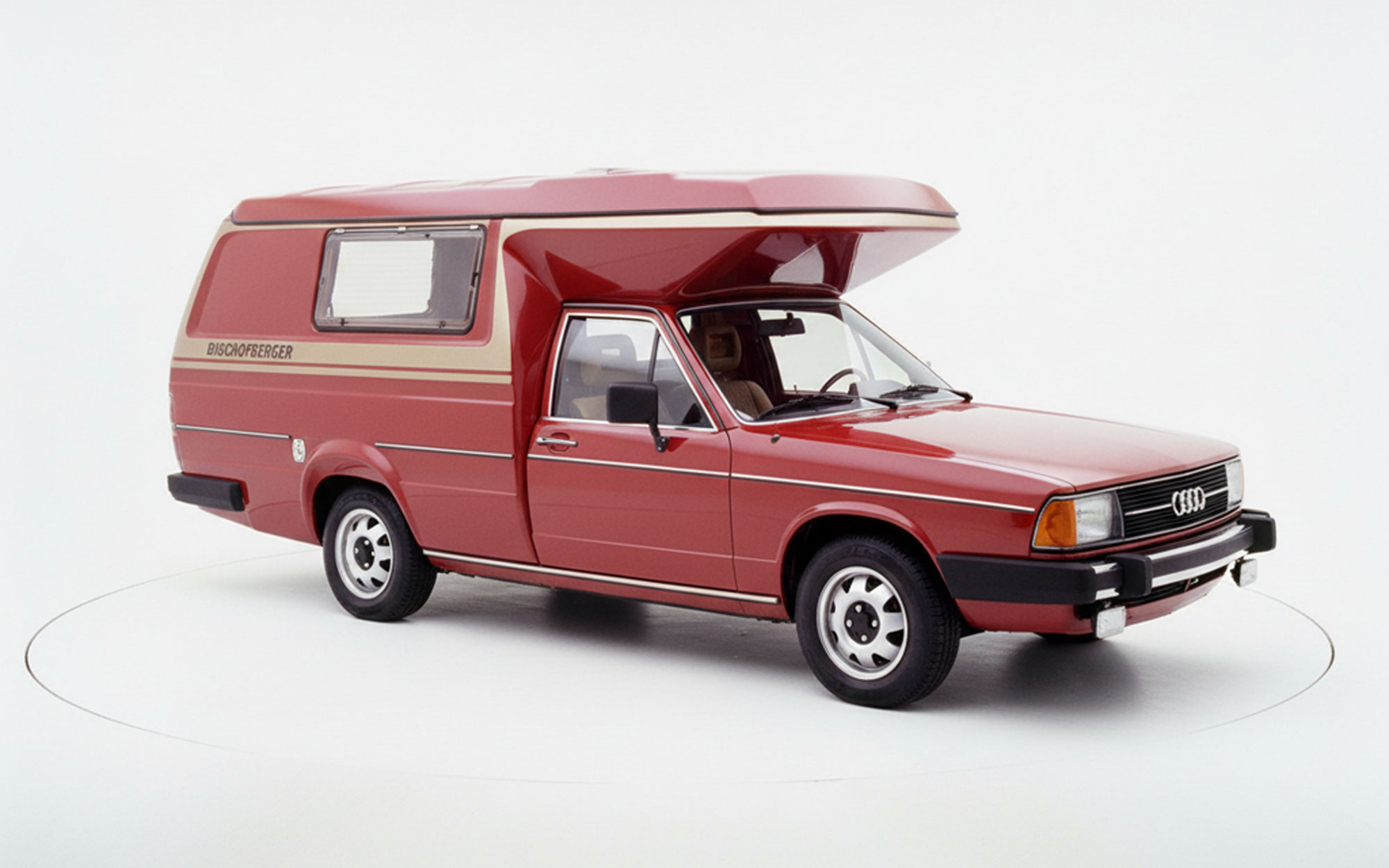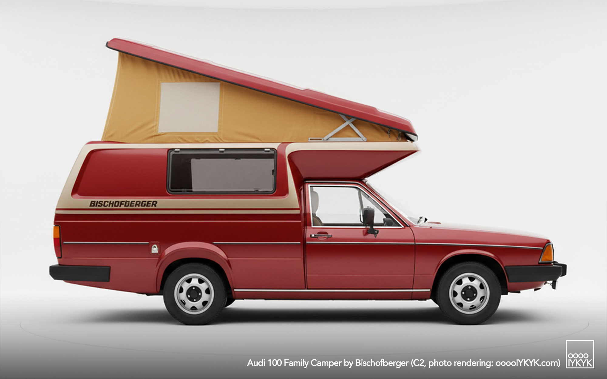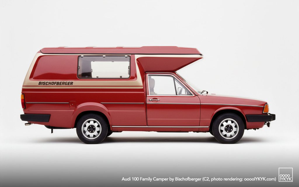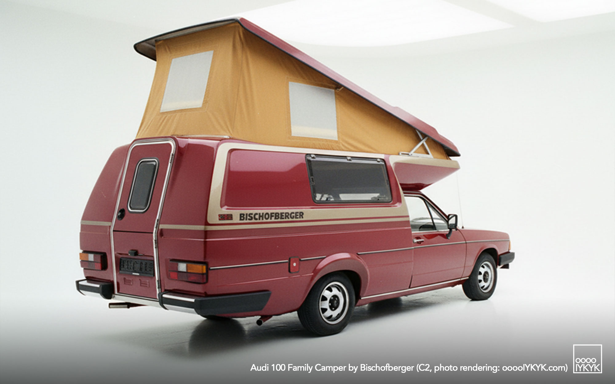 The Bischofberger Family is a rare motorhome conversion based on the Audi 100 C2 (Type 43), developed in the early 1980s by Helmut Bischofberger and produced by Bischofberger Motorcaravan GmbH & Co. in Backnang, Baden-Württemberg, Germany. Conceived as “a new motor home concept,” the Family combined the road manners and performance of a passenger car with the living space and amenities of a compact camper, earning a reputation as one of the fastest German motorhomes of its era.
