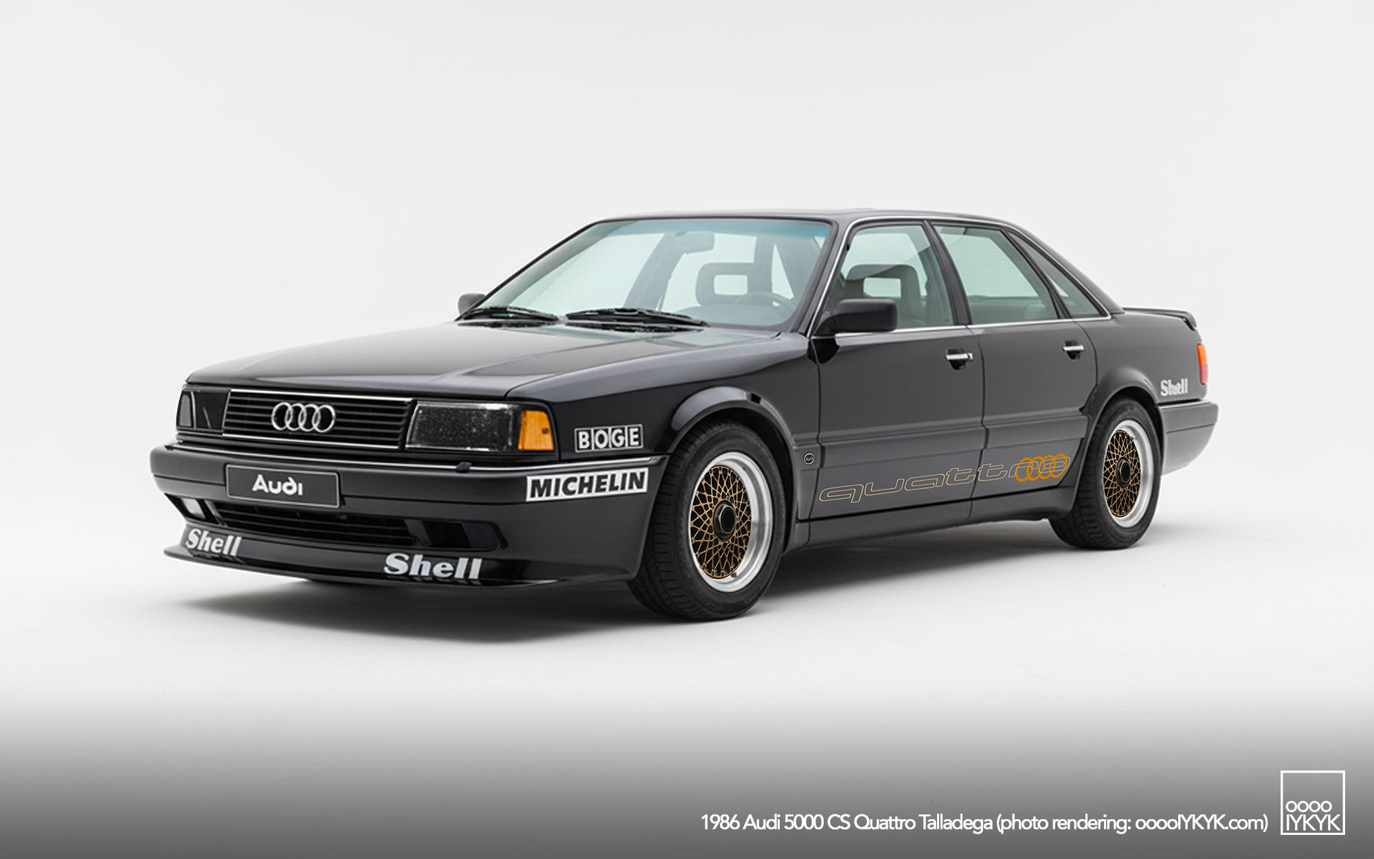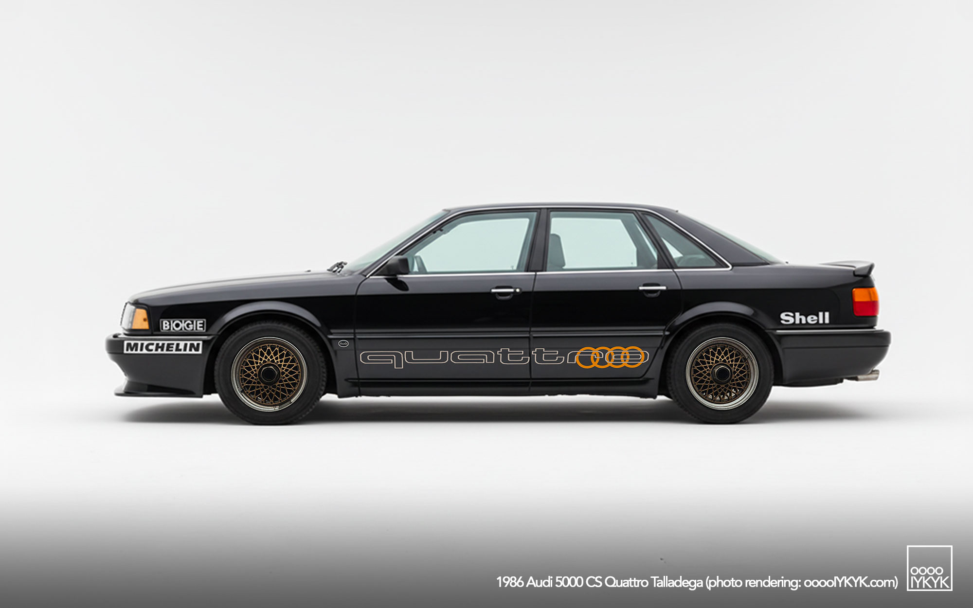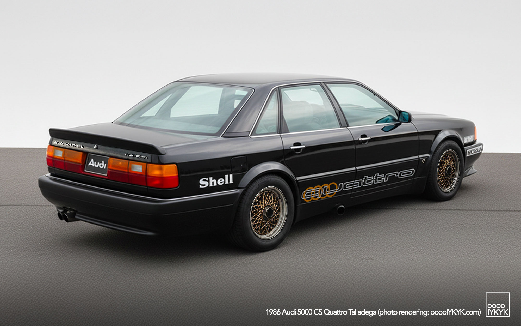 The 1986 Audi 5000 CS quattro “Talladega” was a highly modified prototype performance sedan built by Audi to set closed-circuit speed records for all-wheel-drive production cars. In a promotional motorsport effort designed to boost brand visibility in the United States, Audi selected the Talladega Superspeedway in Alabama as the venue and tapped three-time Indianapolis 500 winner Bobby Unser as its driver. On March 24, 1986, the car established a series of records, including a new closed-circuit lap at over 206 mph (approximately 332 km/h).