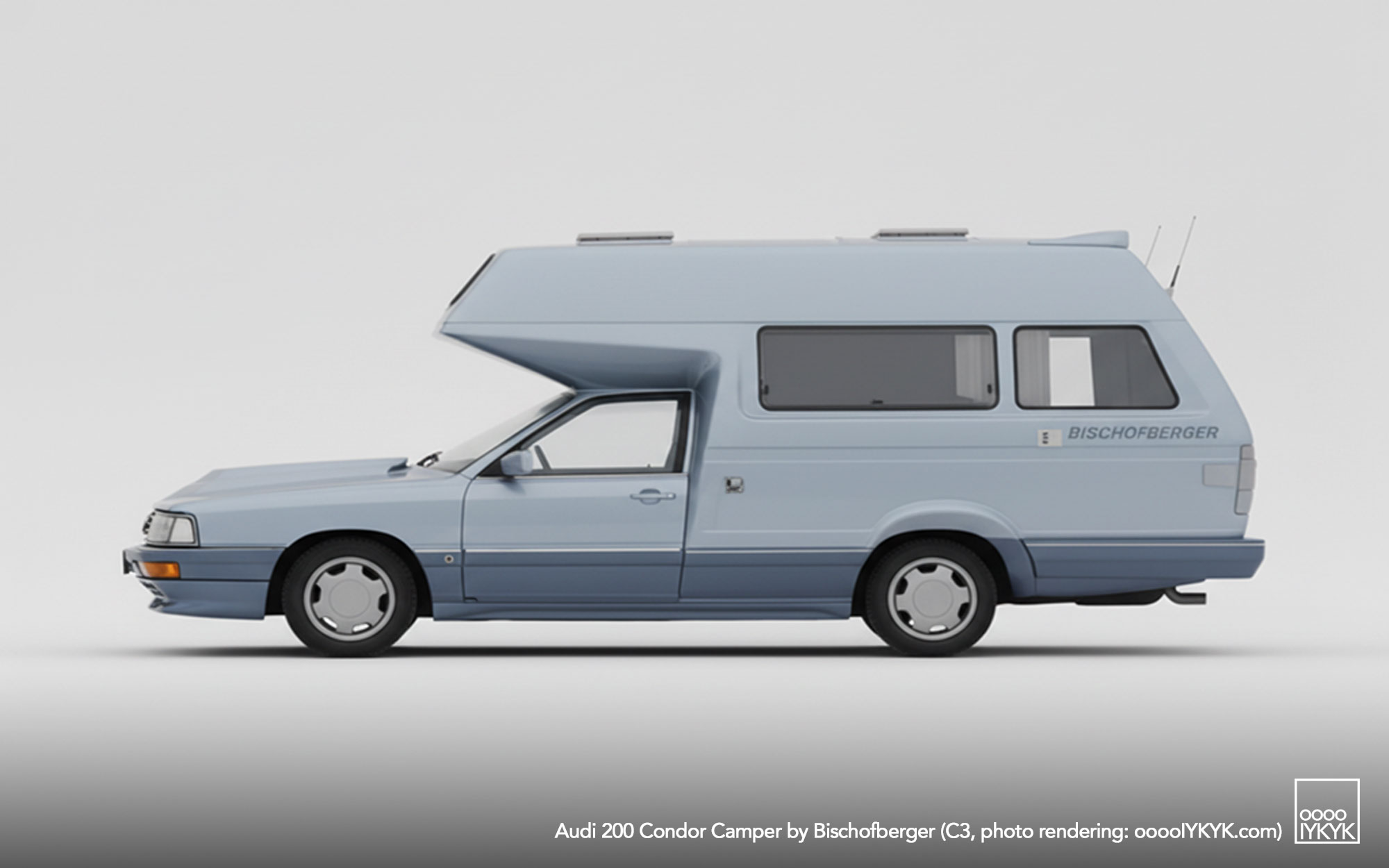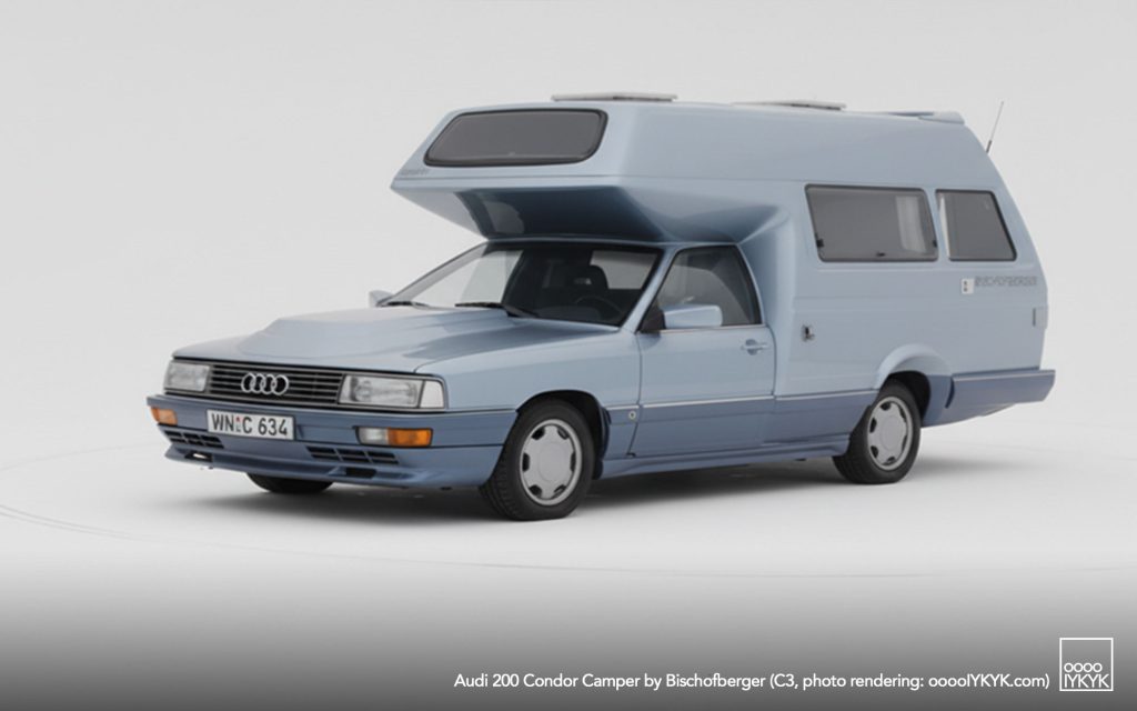 The Bischofberger Condor is a one-off, high-performance motorhome conversion based on the Audi 200 C3 (Type 44), developed in 1987 by Bischofberger Motorcaravan GmbH & Co.. Conceived as the ultimate evolution of the Bischofberger Family concept, the Condor combined a fully equipped camper body with the turbocharged performance of the Audi 200, earning period descriptions as the fastest motorhome in the world. It was the final Audi-based camper built by the company before production ceased in 1989.