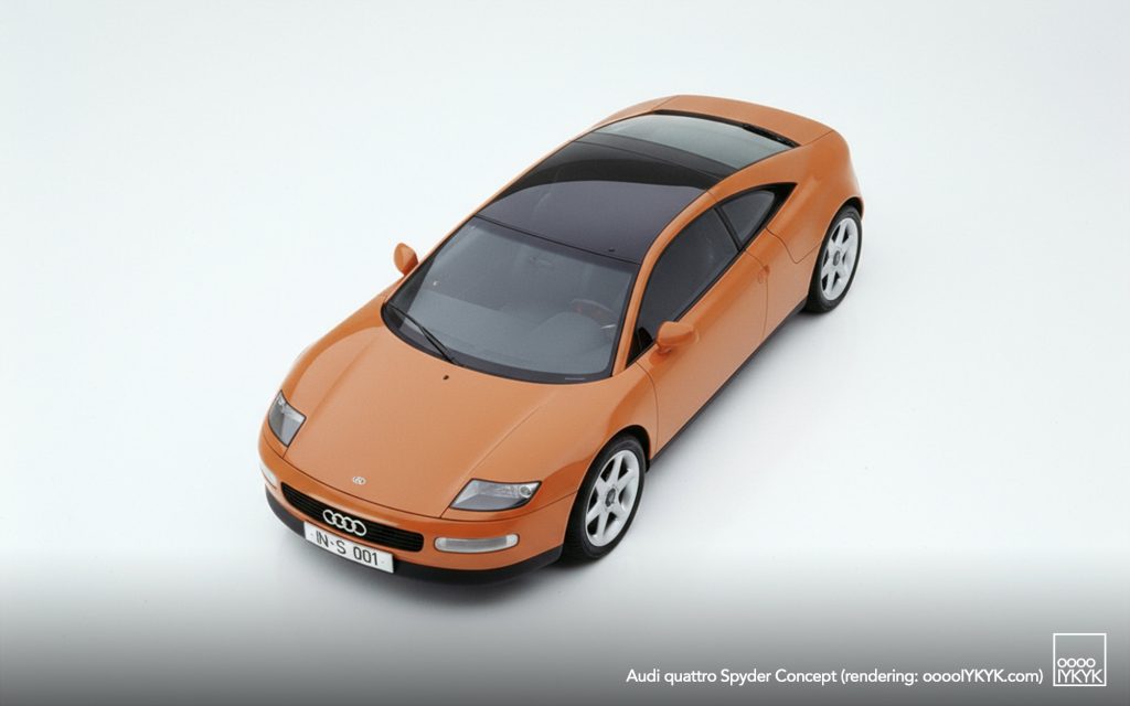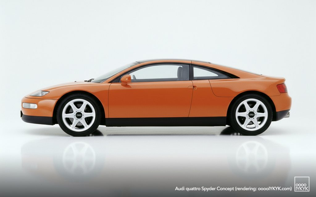 The quattro Spyder emerged at a pivotal moment for Audi as it explored lightweight construction and brand repositioning beyond sedans and touring cars. Developed from around 1990, the project aimed to demonstrate aluminum as a viable structural material while packaging Audi’s quattro system in a mid-engine sports car format.