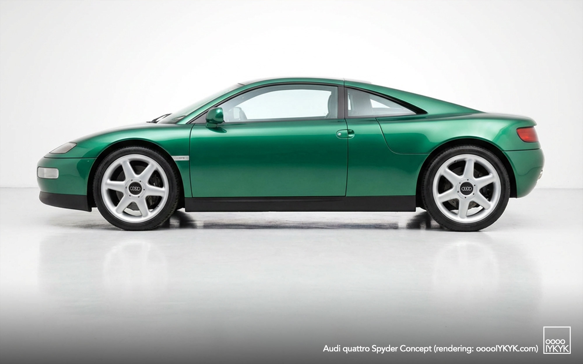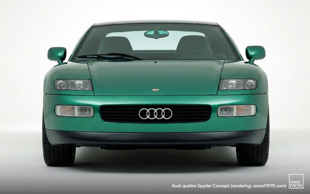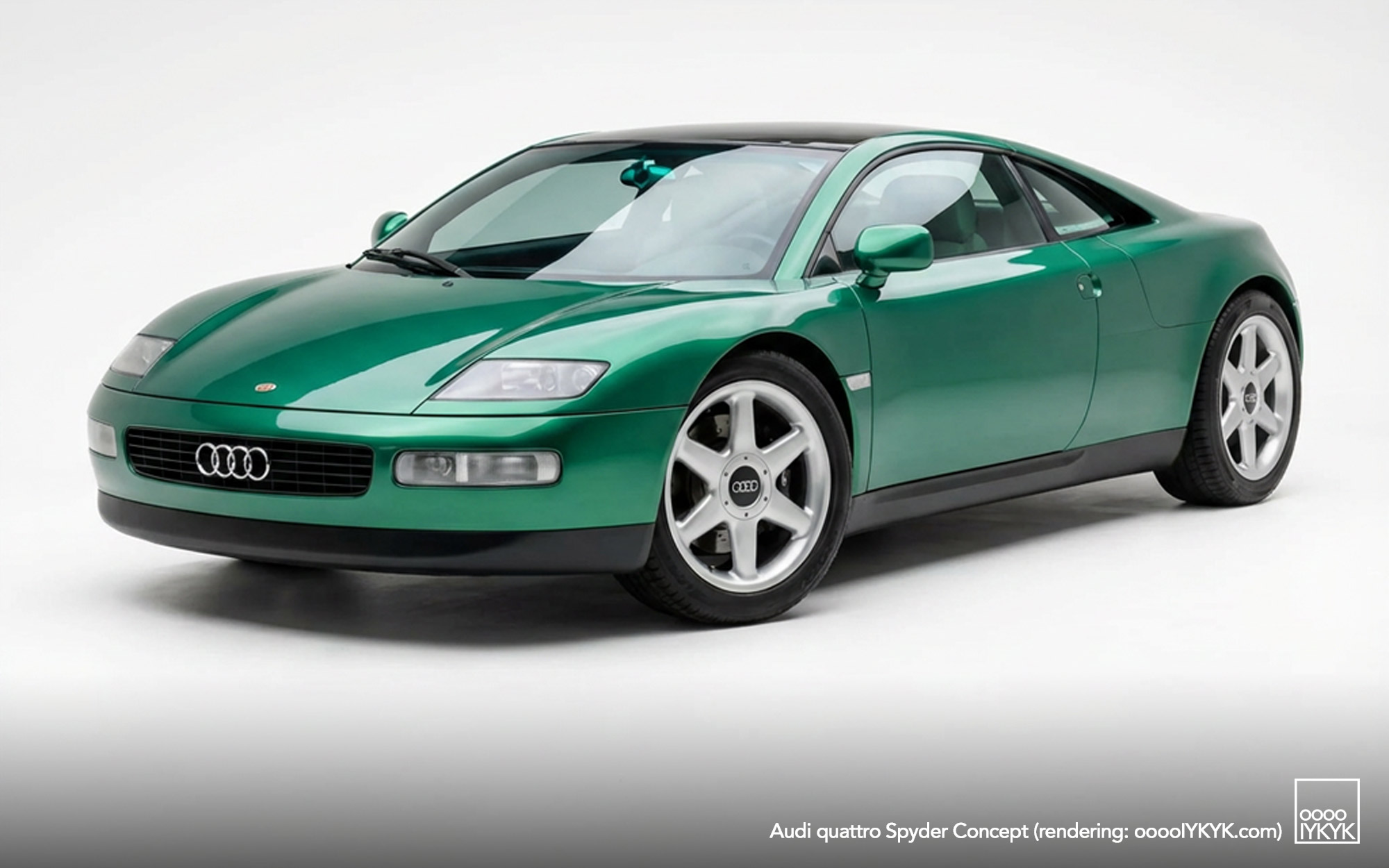 The green quattro Spyder represents a post-debut presentation phase of the original 1991 concept, most likely achieved through repainting the Frankfurt show car for press and promotional use. While claims of multiple prototypes persist, the absence of supporting factory documentation and the survival of only a single example strongly indicate that the Spyder program produced one fully realized vehicle.