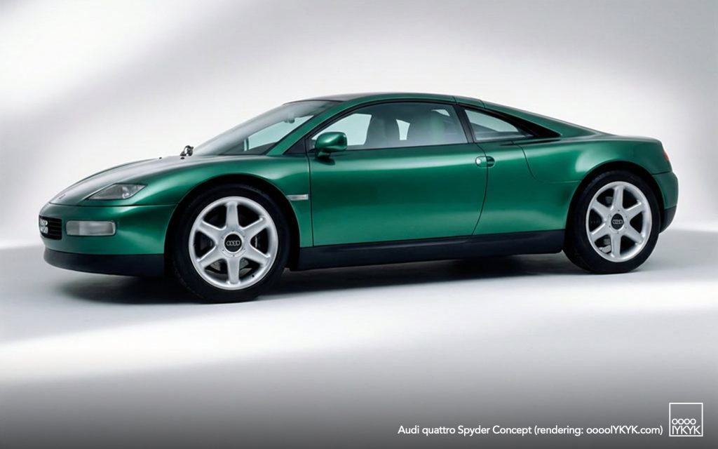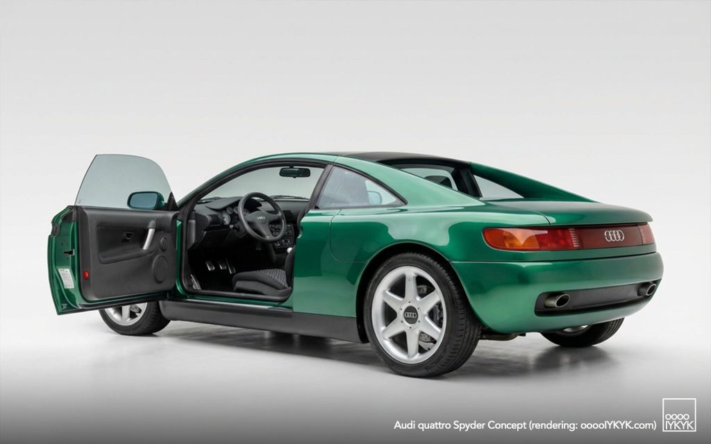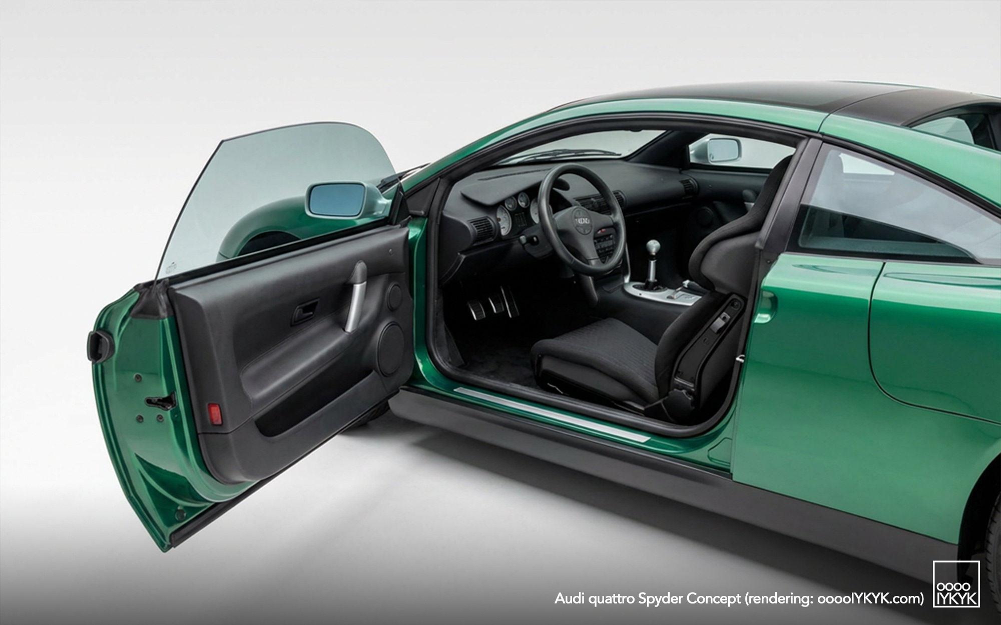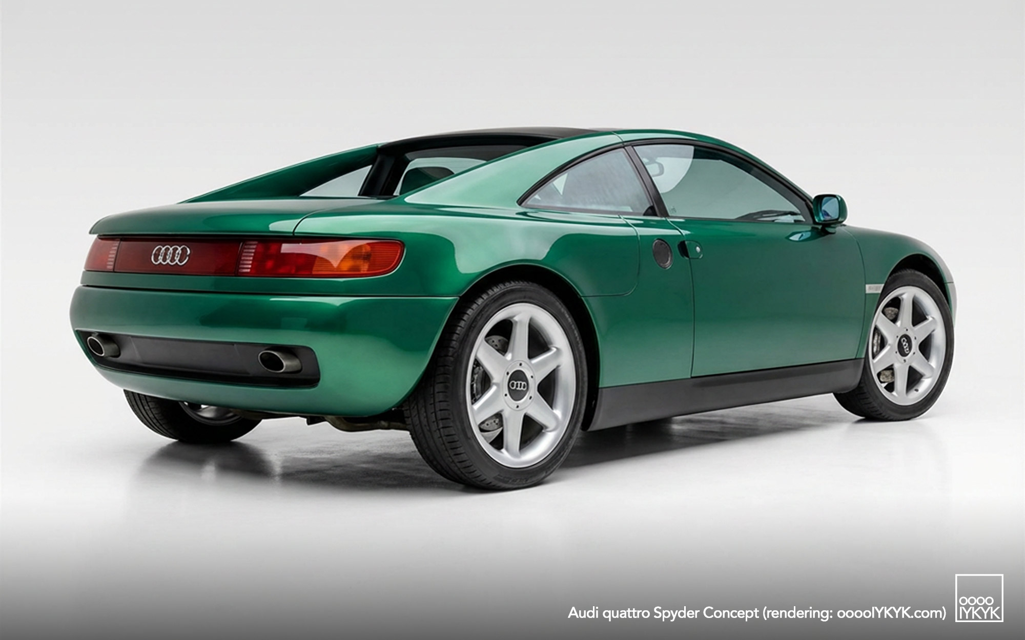 The green quattro Spyder represents a post-debut presentation phase of the original 1991 concept, most likely achieved through repainting the Frankfurt show car for press and promotional use. While claims of multiple prototypes persist, the absence of supporting factory documentation and the survival of only a single example strongly indicate that the Spyder program produced one fully realized vehicle.