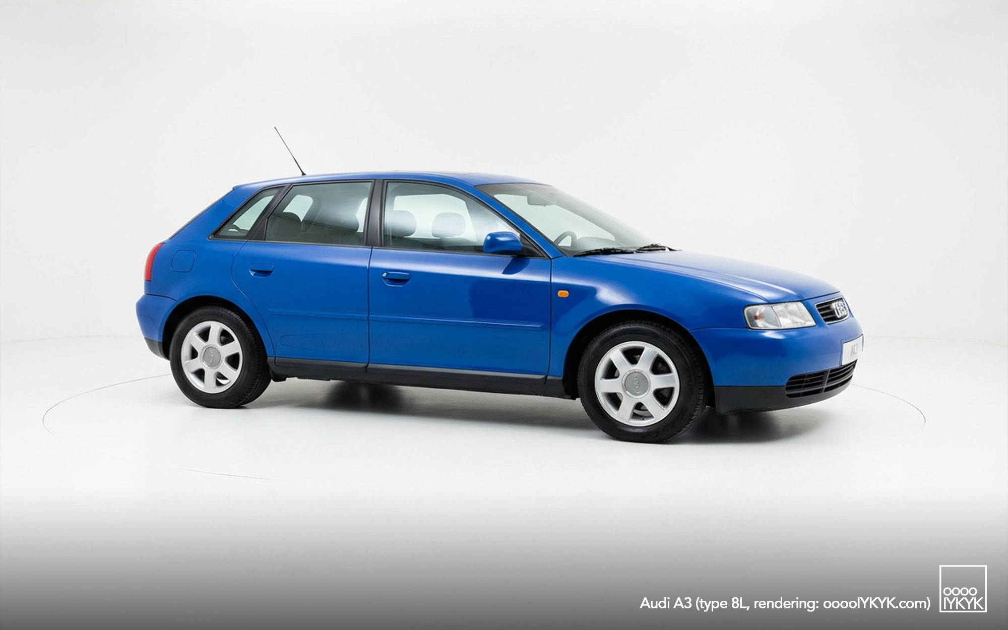 The Audi A3 (Type 8L) is the first generation of the Audi A3 compact hatchback, produced from 1996 to 2003 in Europe and until 2006 in Brazil. As Audi’s return to the small-car segment after the Audi 50 ended production in 1978, the 8L marked a major expansion of the brand’s model portfolio and introduced premium features to the compact class. It debuted at the 1996 Paris Motor Show, initially as a three-door hatchback, and became one of Audi’s most successful models of the late 1990s and early 2000s.