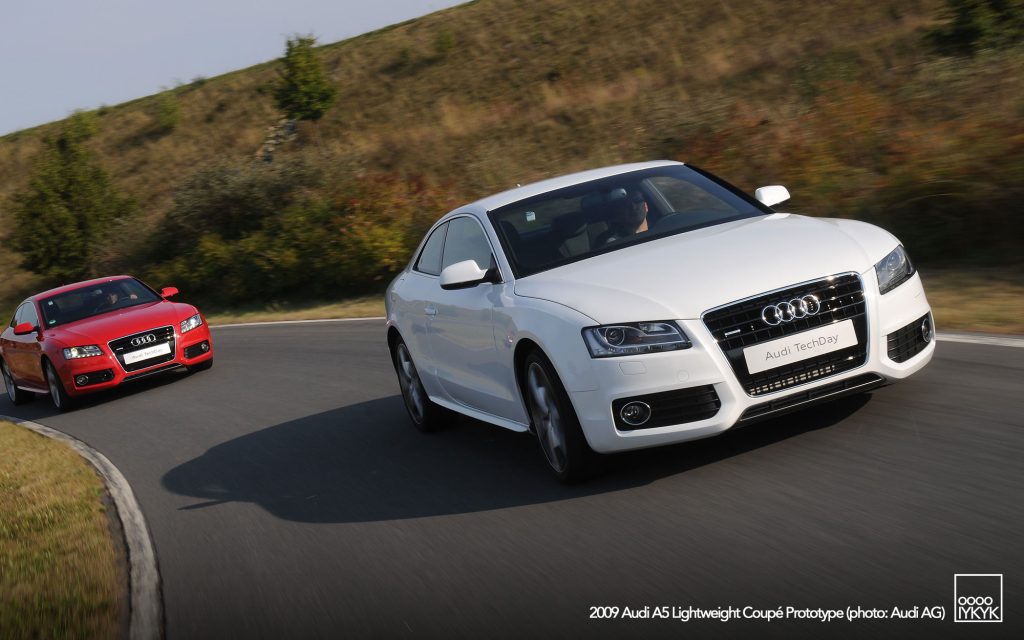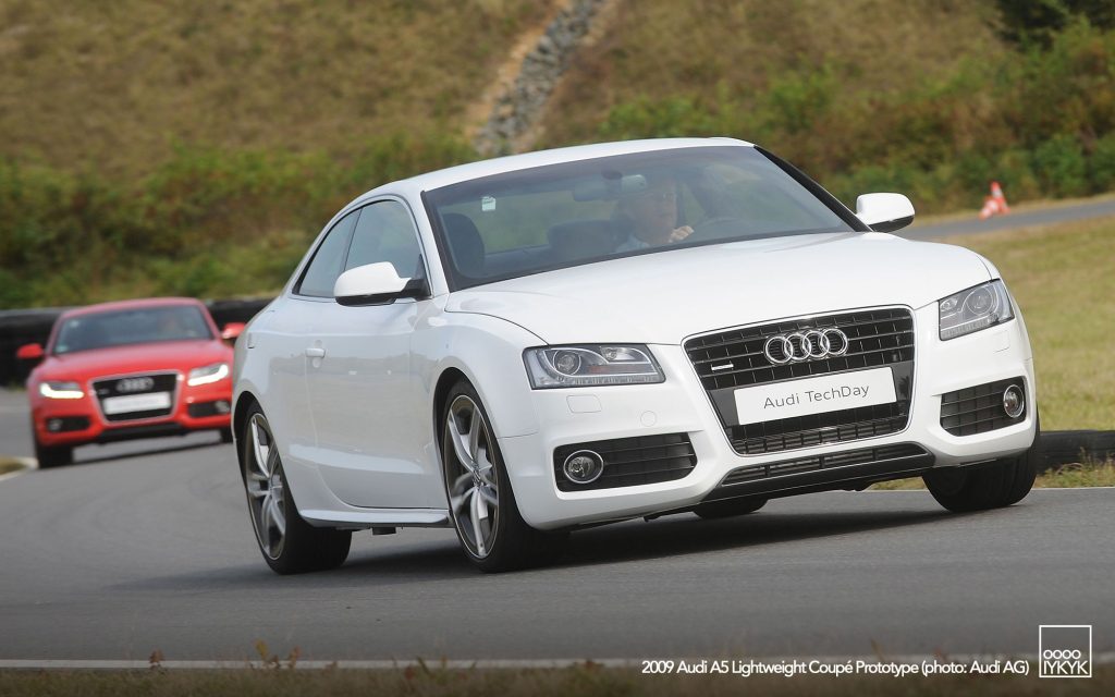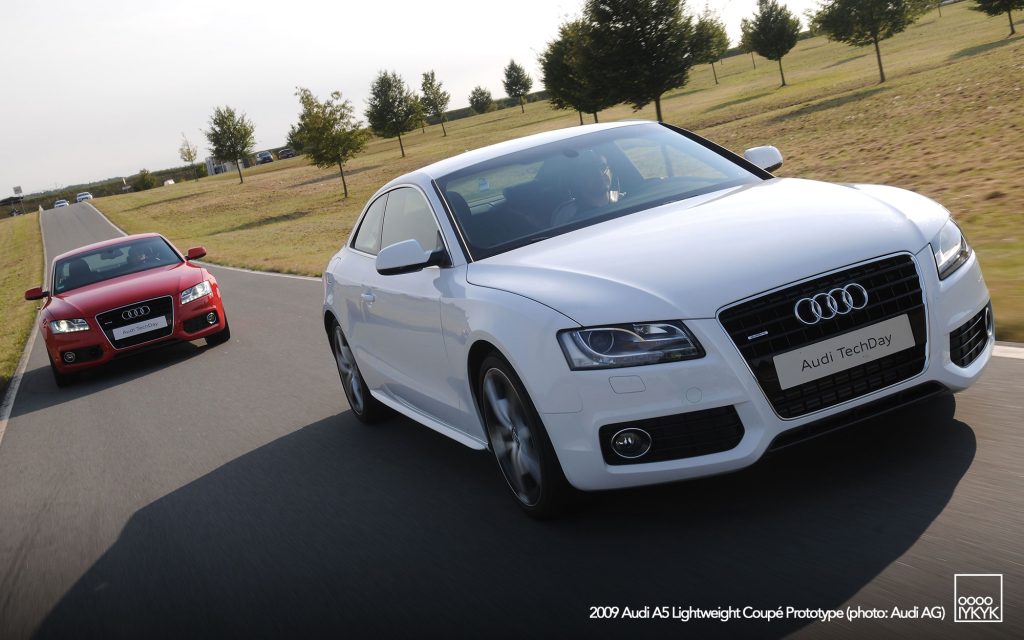 The Audi A5 Lightweight Coupe Prototype was an experimental research vehicle built by Audi AG in 2009 to explore the use of lightweight construction in a mid-size coupe. Developed under the direction of Michael Dick, then Audi Board Member for Technical Development, the car was part of Audi’s continued evolution of its Aluminum Space Frame (ASF) technology and its broader strategy to improve efficiency through material innovation. The vehicle debuted to the motoring press during an Audi TechDay on lightweight construction at the Bosch Boxberg Proving Grounds in Germany, a closed test facility typically used for engineering evaluation rather than media demonstrations.