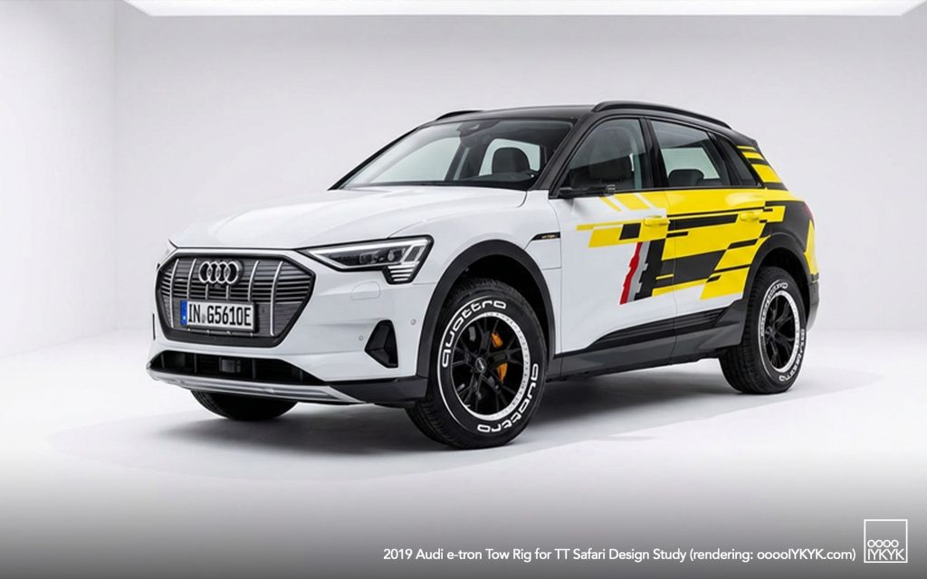 The e-tron Safari Tow Vehicle debuted alongside the Audi TT Safari at pre-Wörthersee events and during the 2019 GTI Treffen gathering in Austria. Its coordinated presentation reinforced Audi’s tradition of apprentice-built show cars and highlighted the contrast between electric mobility and classic rally-inspired styling. It also brought enthusiast attention to Audi’s then new e-tron, their first mainstream Battery Electric Vehicle (BEV).