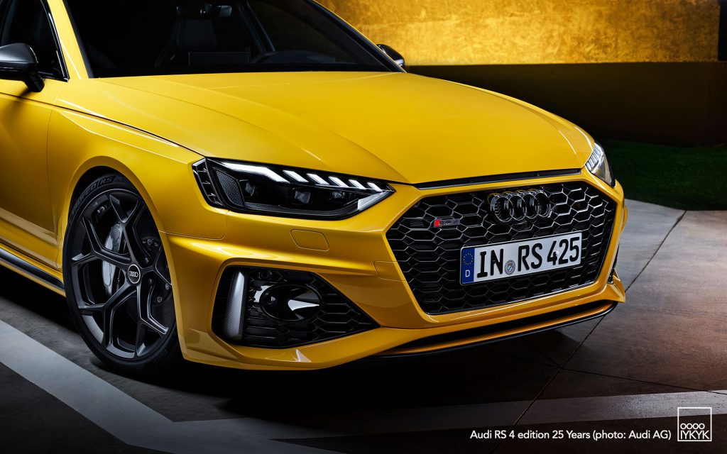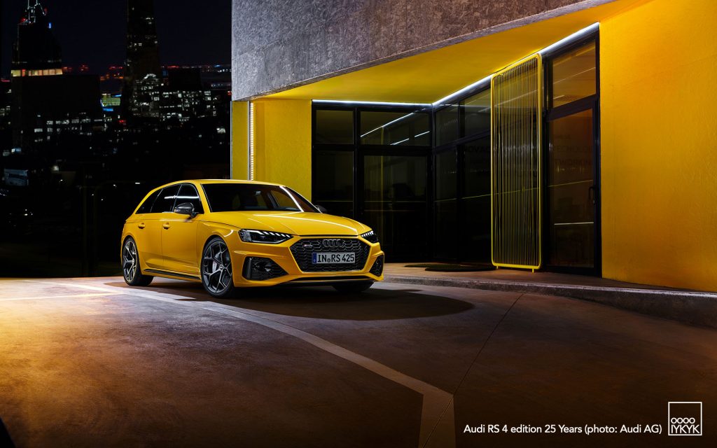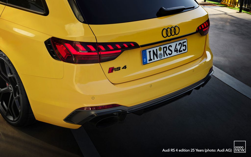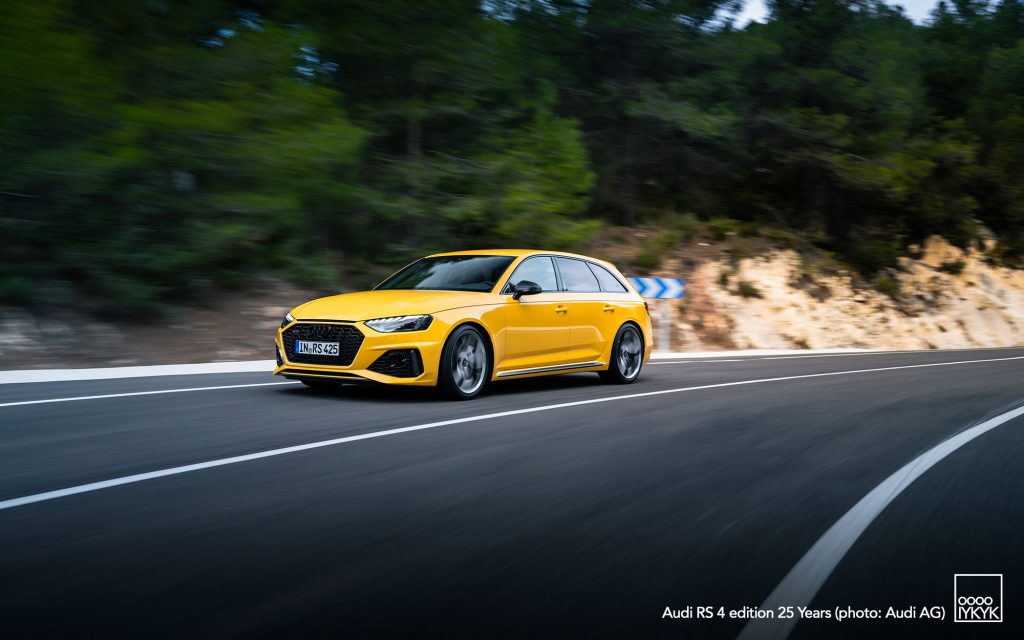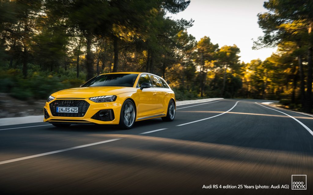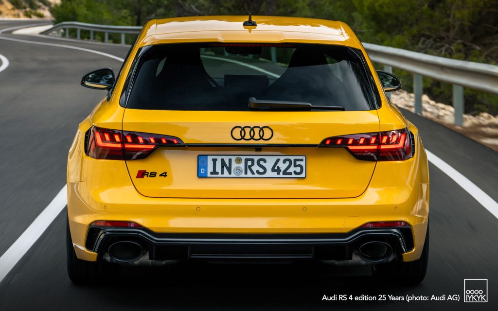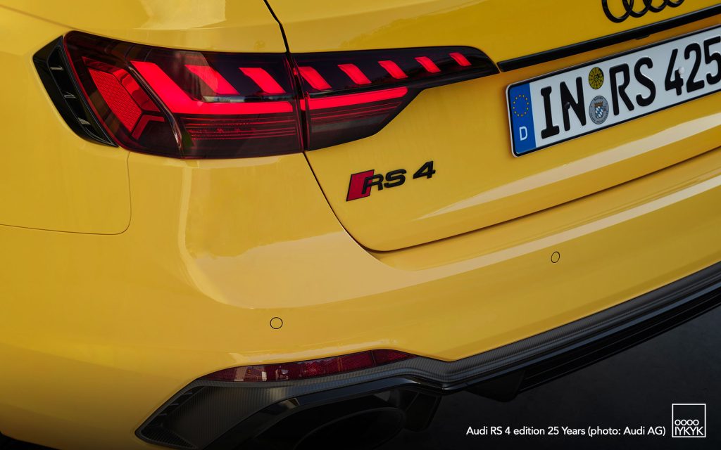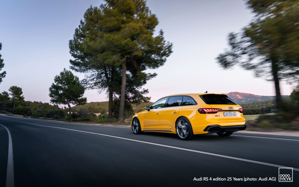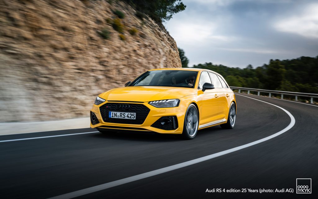 The Audi RS 4 Avant edition 25 years is a limited-production high-performance estate car introduced in 2024 to commemorate the 25th anniversary of Audiโs RS 4 model line. Developed by Audi Sport GmbH and Audi exclusive, the edition serves as the performance flagship of the B9-generation A4 series and pays visual and conceptual tribute to the 2001 RS4 Sport of the first-generation RS 4 (B5). Production is limited to 250 units for Europe, with each vehicle individually numbered.