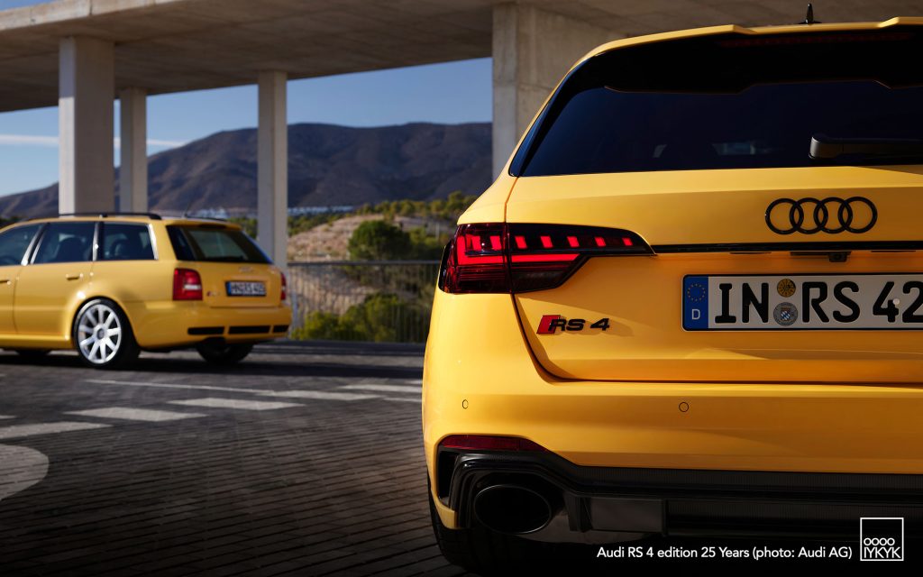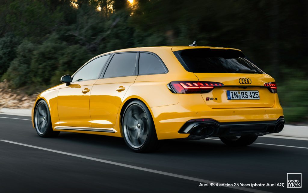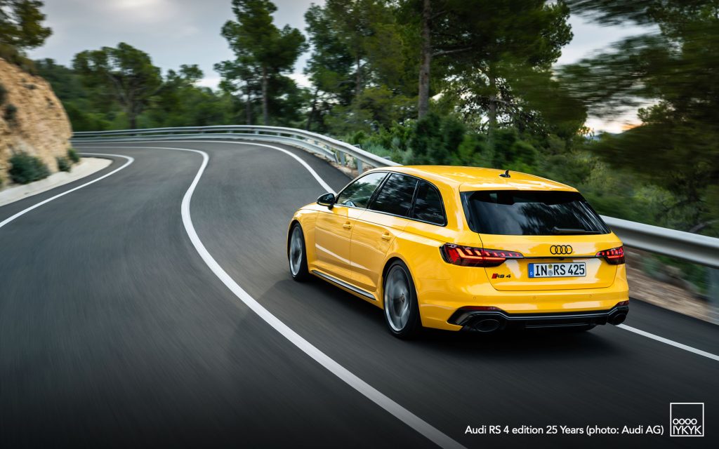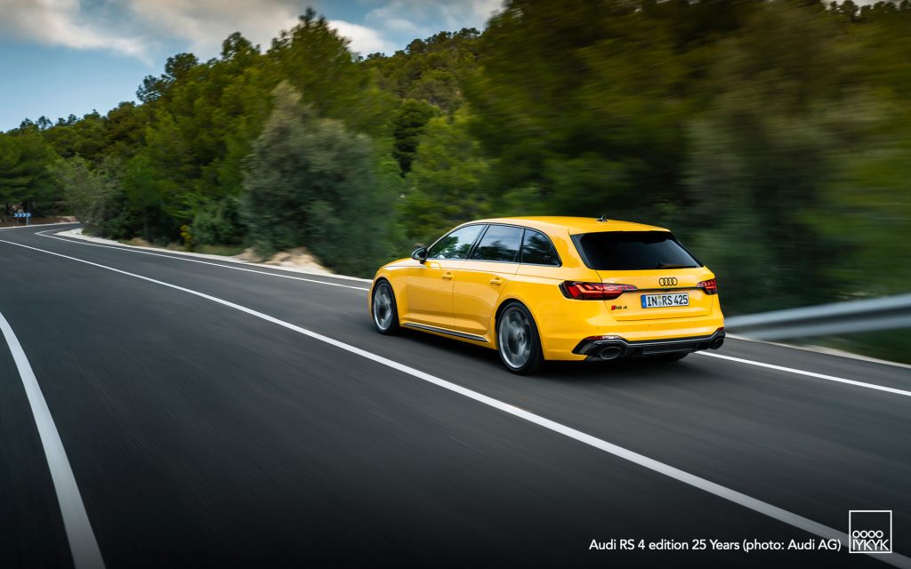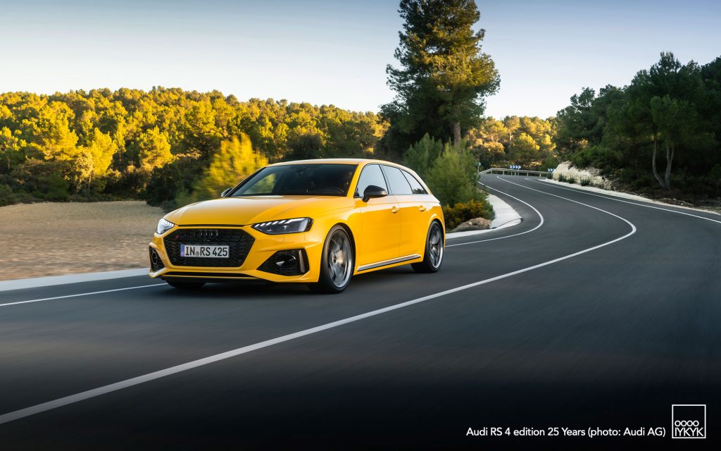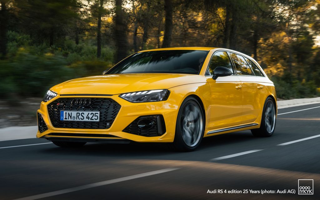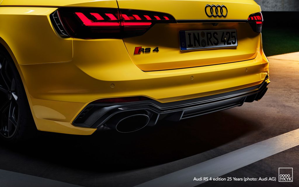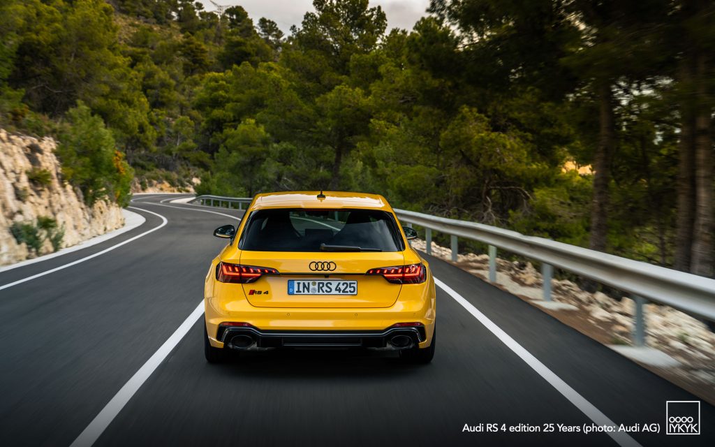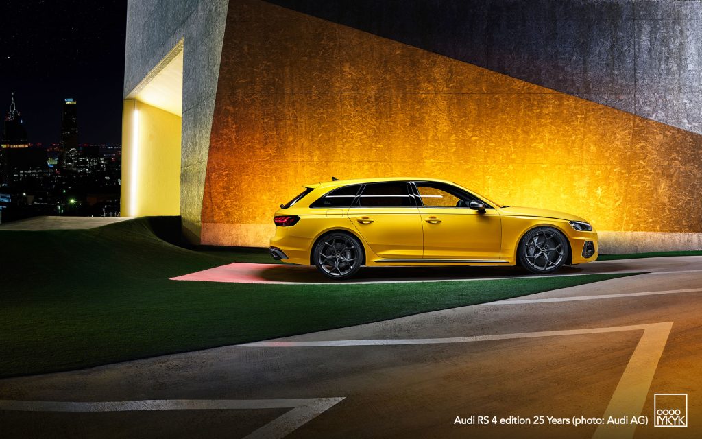The Audi RS 4 Avant edition 25 years is a limited-production high-performance estate car introduced in 2024 to commemorate the 25th anniversary of Audiโs RS 4 model line. Developed by Audi Sport GmbH and Audi exclusive, the edition serves as the performance flagship of the B9-generation A4 series and pays visual and conceptual tribute to the 2001 RS4 Sport of the first-generation RS 4 (B5). Production is limited to 250 units for Europe, with each vehicle individually numbered.
