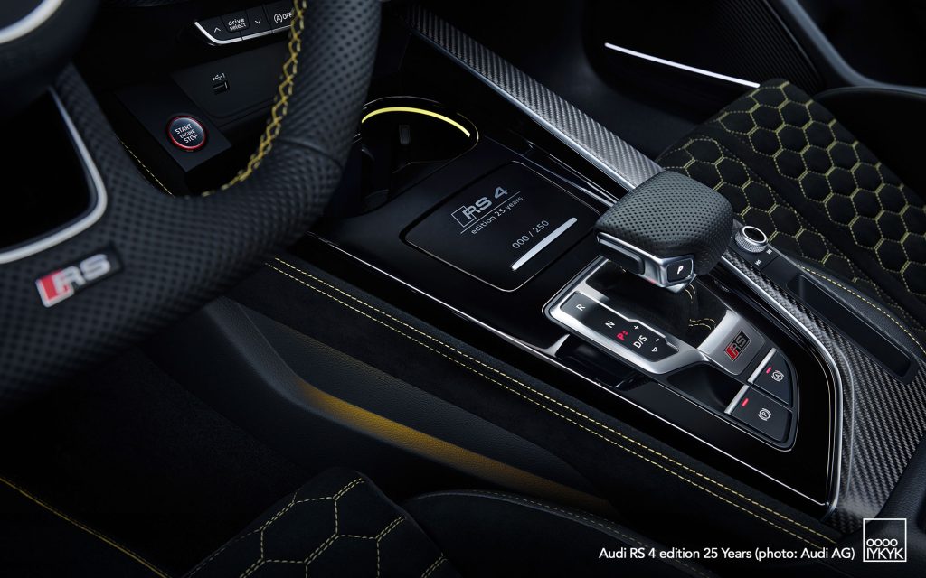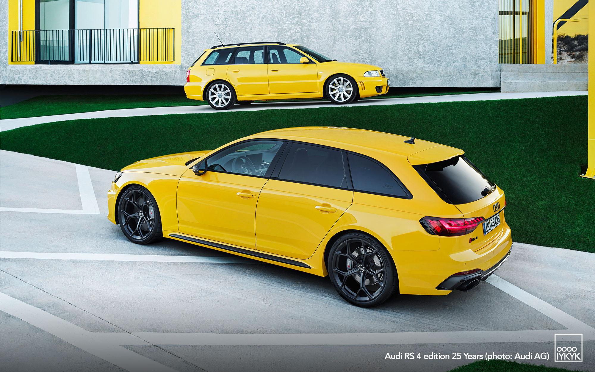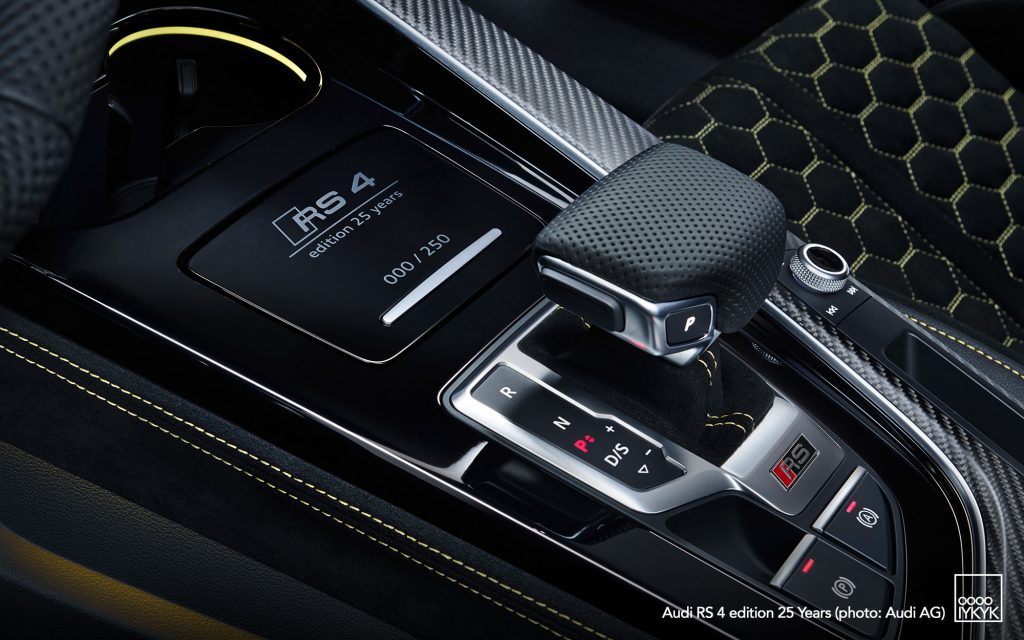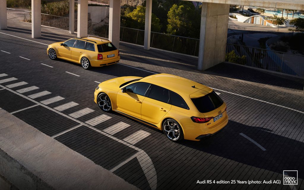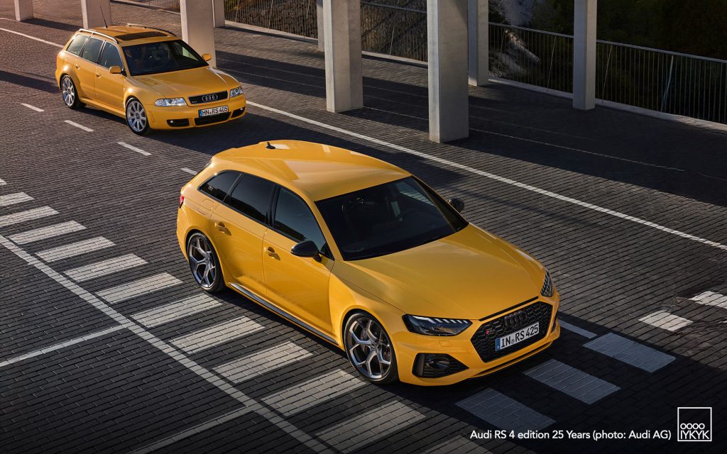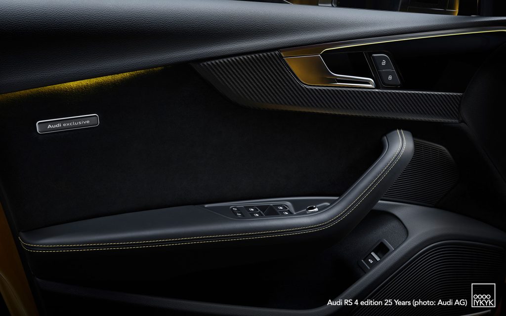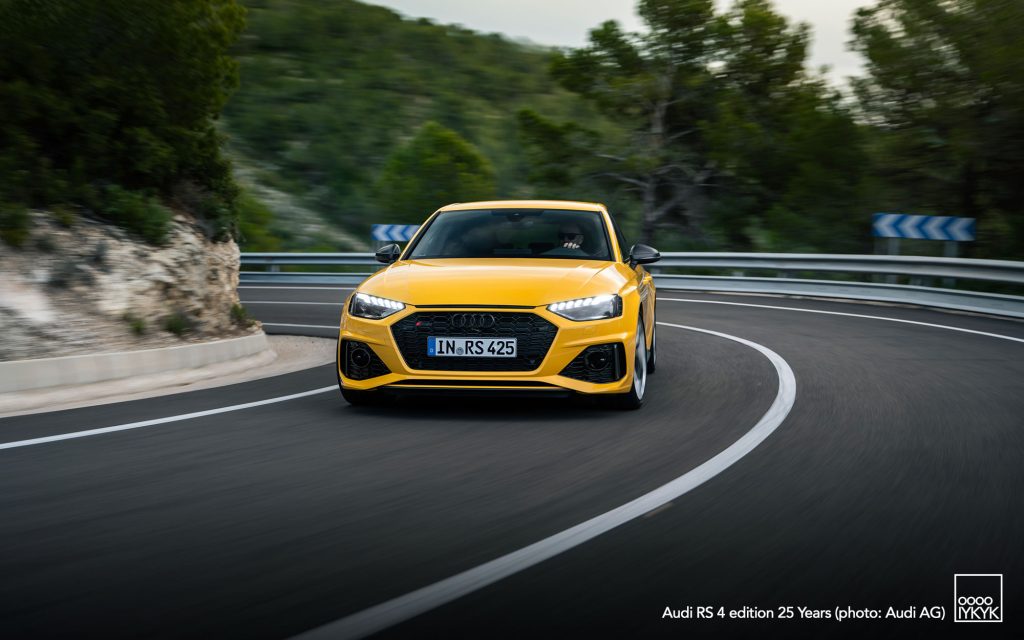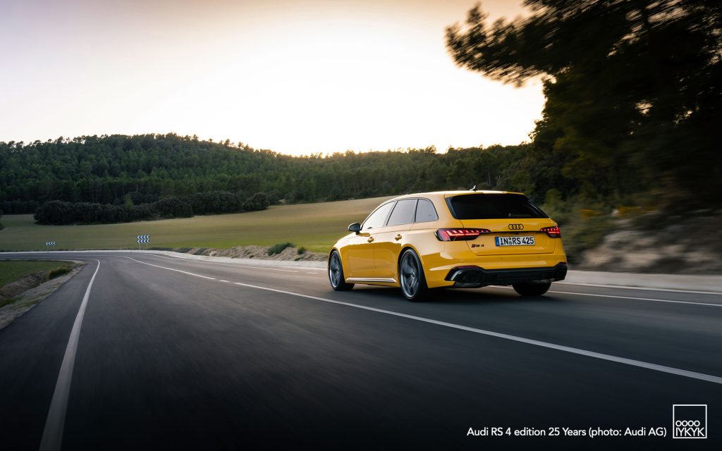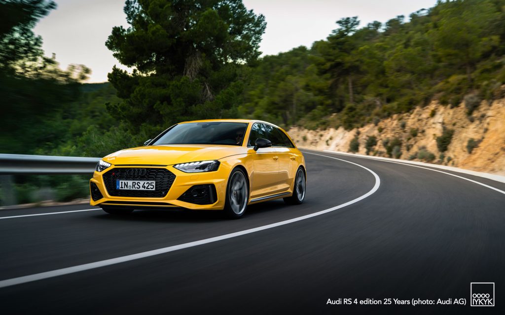 The Audi RS 4 Avant edition 25 years is a limited-production high-performance estate car introduced in 2024 to commemorate the 25th anniversary of Audiโs RS 4 model line. Developed by Audi Sport GmbH and Audi exclusive, the edition serves as the performance flagship of the B9-generation A4 series and pays visual and conceptual tribute to the 2001 RS4 Sport of the first-generation RS 4 (B5). Production is limited to 250 units for Europe, with each vehicle individually numbered.