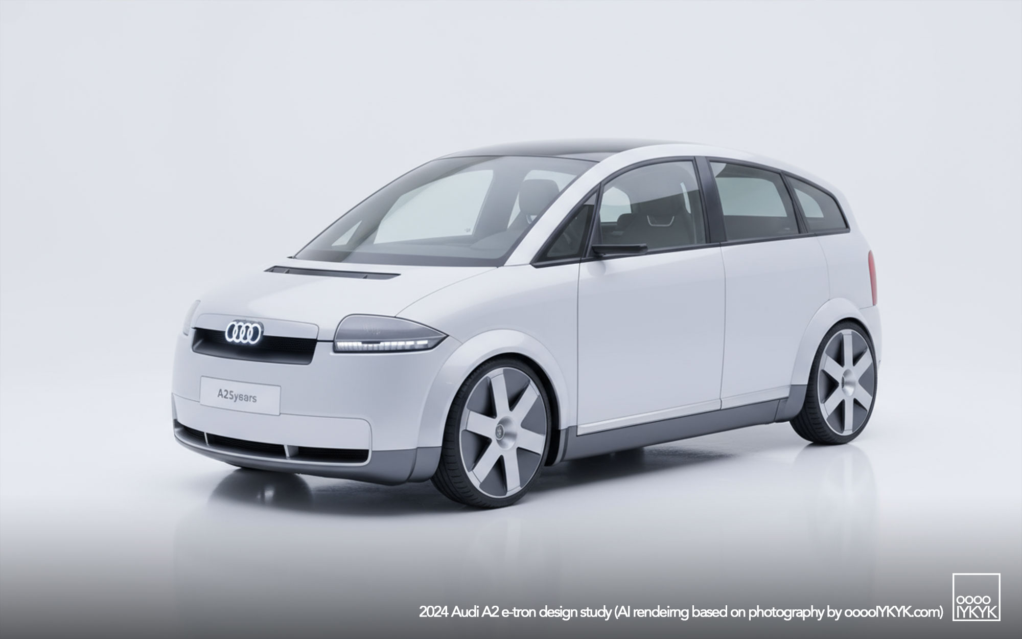 The Audi A2 e-tron Concept is a one-off electric prototype created in 2024 by Audi trainees and students to mark the 25th anniversary of the original Audi A2. Developed within Audi’s apprenticeship programme, the project follows earlier student-led studies such as the RS6 GTO (2020) and the NSU EP4 (2023).