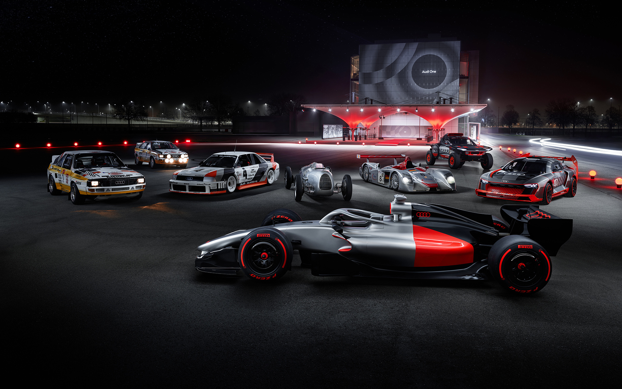 As part of the Audi One program, the presentation included a dedicated Audi Tradition integration that underscored the brand’s historic motorsport lineage. Executives, motorsport legends, and key figures associated with Audi’s racing past arrived in a curated selection of iconic competition machines maintained by Audi Tradition. The procession featured everything from Group B–era quattro machinery to Le Mans–winning prototypes, each driven or accompanied by personalities linked to the cars themselves. This symbolic convergence of heritage and future served as a visual bridge between Audi’s most celebrated moments in rallying and endurance racing and its forthcoming entry into Formula One, reinforcing the message that the R26 concept is the next chapter in a legacy defined by innovation, competition, and technological ambition.