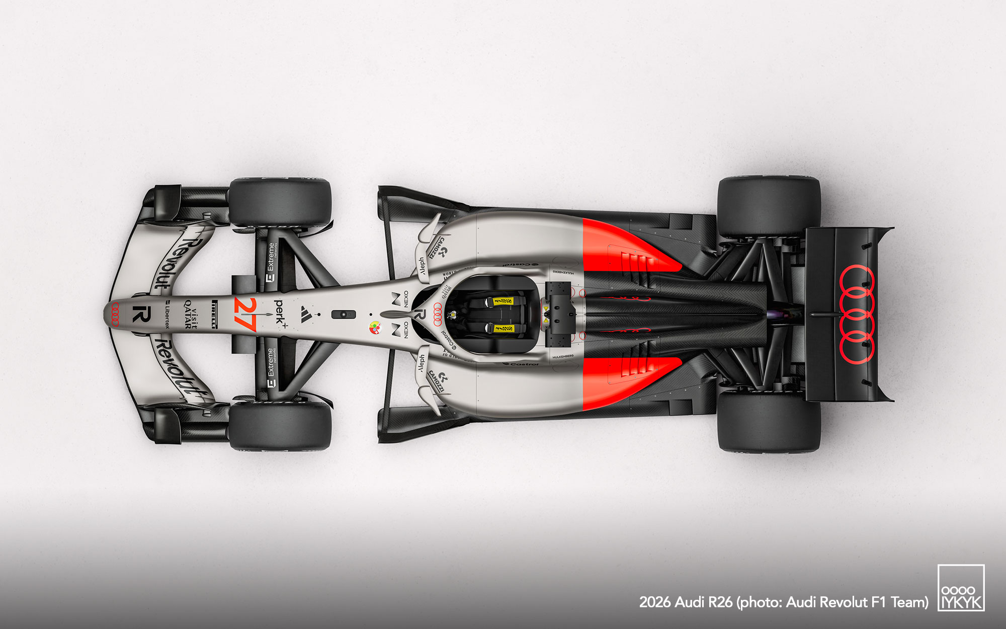 The Audi R26 is a Formula One car developed by the Audi factory team for the 2026 FIA Formula One World Championship season. It is the first Grand Prix car built entirely under Audi’s works Formula One program and the first to comply with the sport’s sweeping 2026 technical regulations, which introduced major changes to aerodynamics, vehicle weight and hybrid power unit architecture. The R26 represents Audi’s entry into Formula One as a full constructor, combining chassis operations in Switzerland with German-developed powertrain technology.