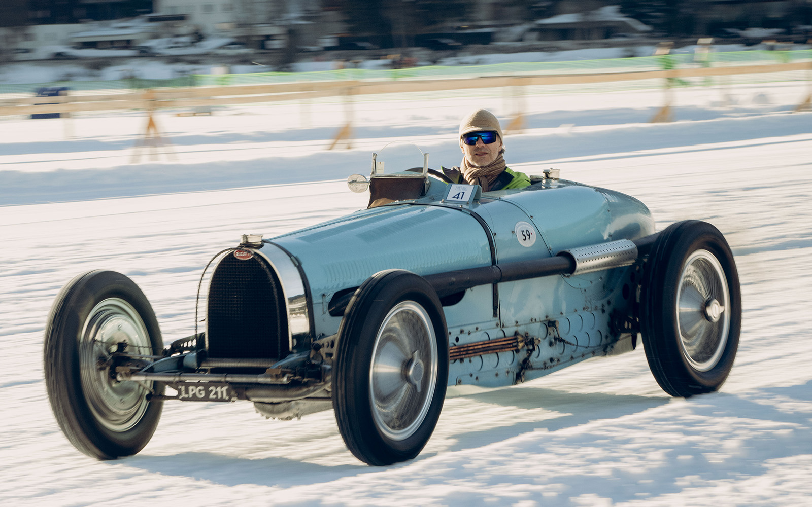 The Swiss town of St. Moritz, located on the southern slopes of the Abula Alps near Piz Nair, is known for both its idyllic views and also its ski resort bonafides as exemplified in its hosting both the 1928 and 1948 editions of the Winter Olympics. Nearby Lake St. Moritz is also home to the I.C.E., an event conceptualized as far back as 1985 when several adventurous British participants in the long-held Cresta Run skeleton race hatched a plan for an extracurricular activity involving driving a few of their vintage Bentleys on the frozen lake.