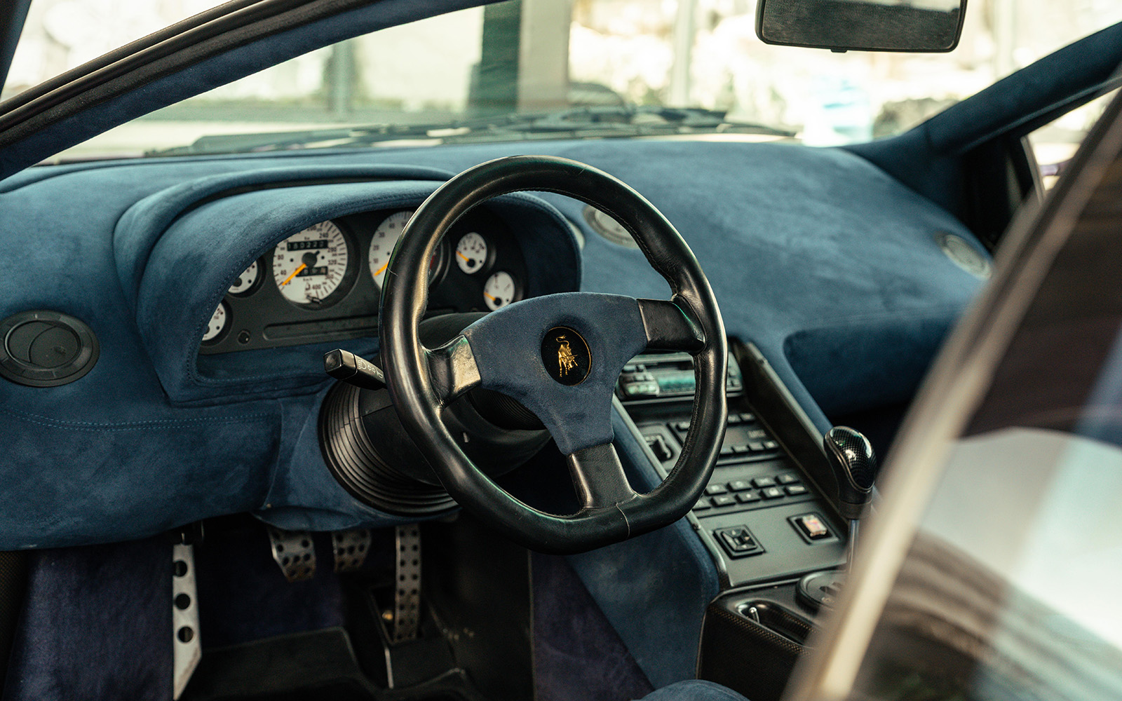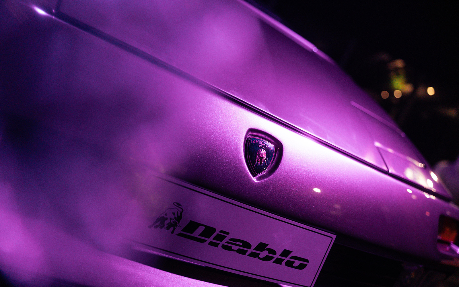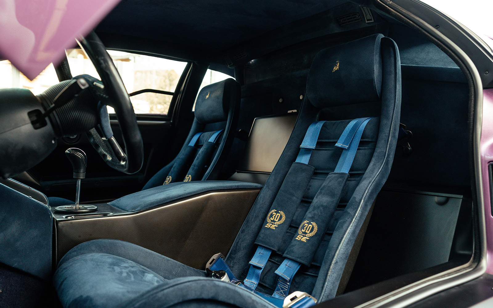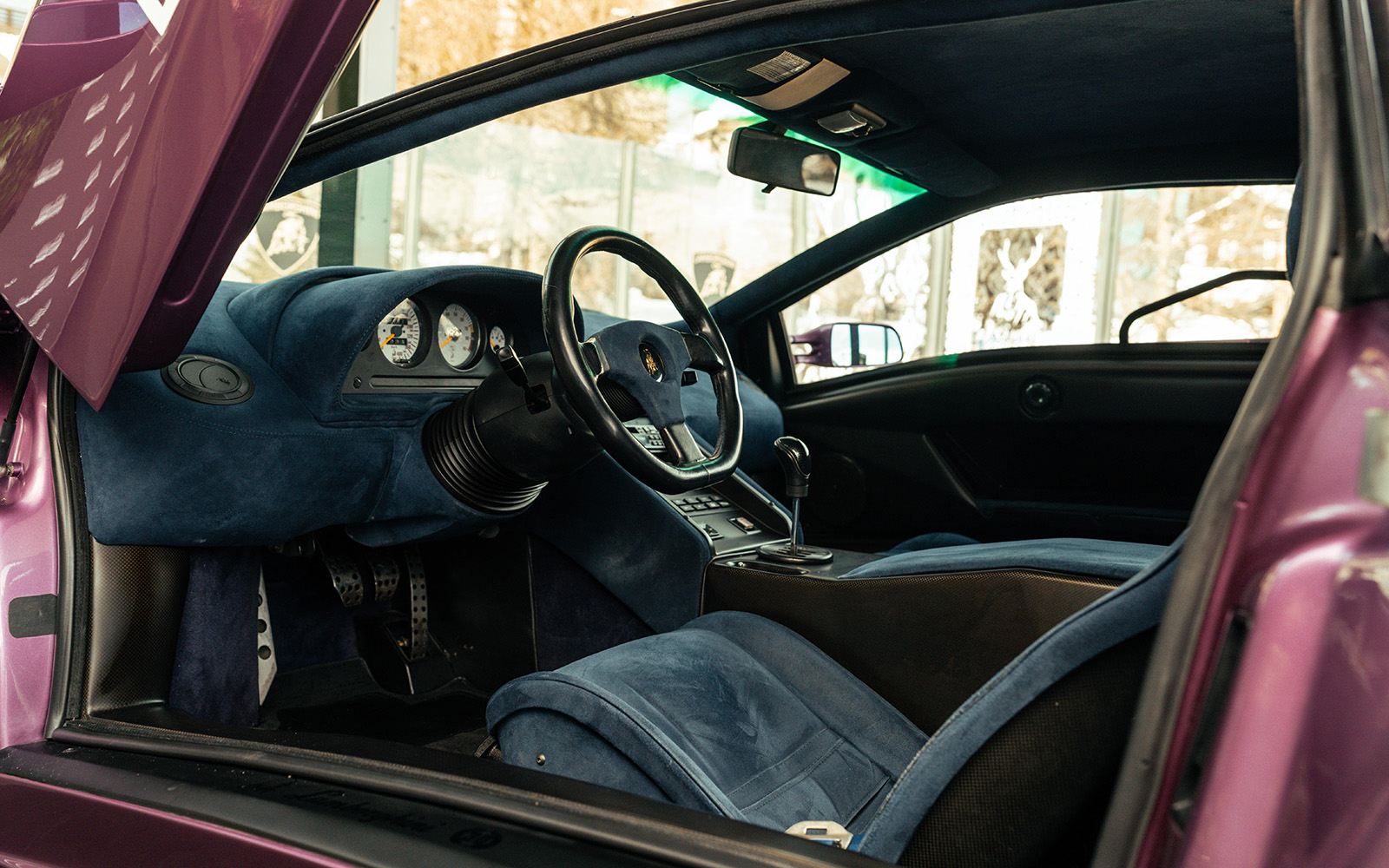 Elsewhere, a Lamborghini erected a Polo Storico Lounge for guests and journalists. Here, they displayed a Diablo SE30 painted the very special color of “Lambo Thirty” a.k.a. Viola 30 – a special purple created for this anniversary Diablo. The car had been lifted via crane to take its place on the panoramic terrace of the Balthazar Downtown and with views of Lake St. Moritz.