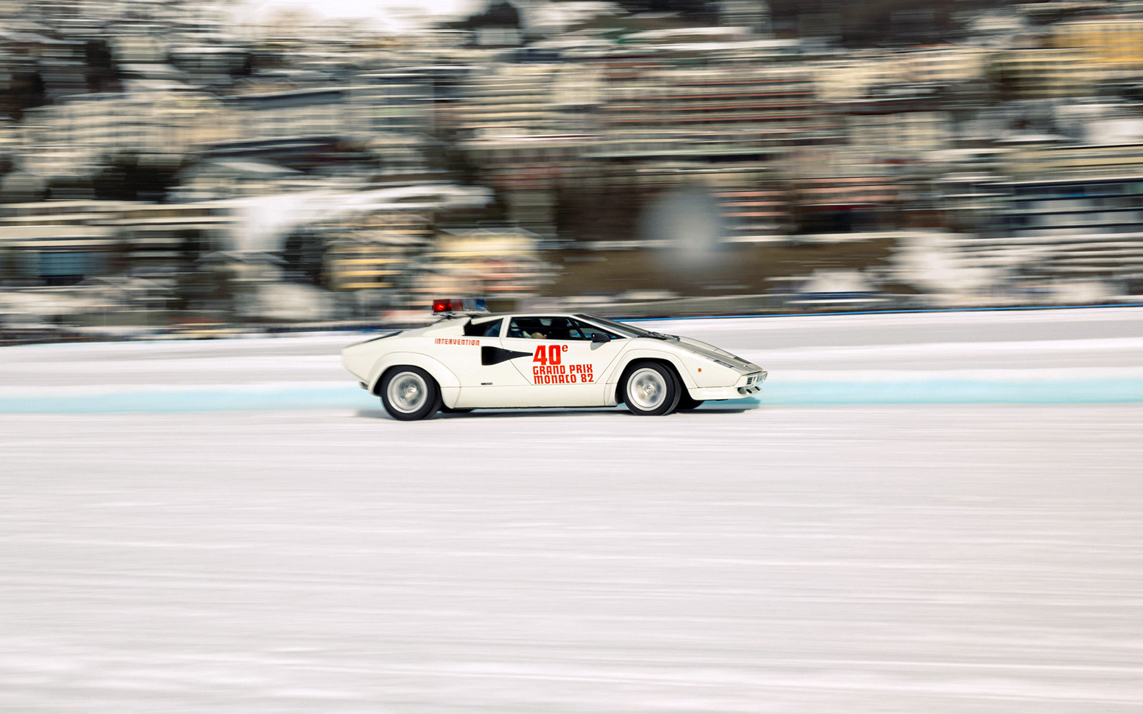 Over on the lake, Lamborghini displayed and exercised two more special cars. First was the Countach LP 400S “Pace Car” that operated as safety car at the F1 Grand Prix of Monaco in 1981 and 1982. This car is one of the most iconic pace cars ever, and it’s currently being analyzed by Polo Storico as part of their certification process.