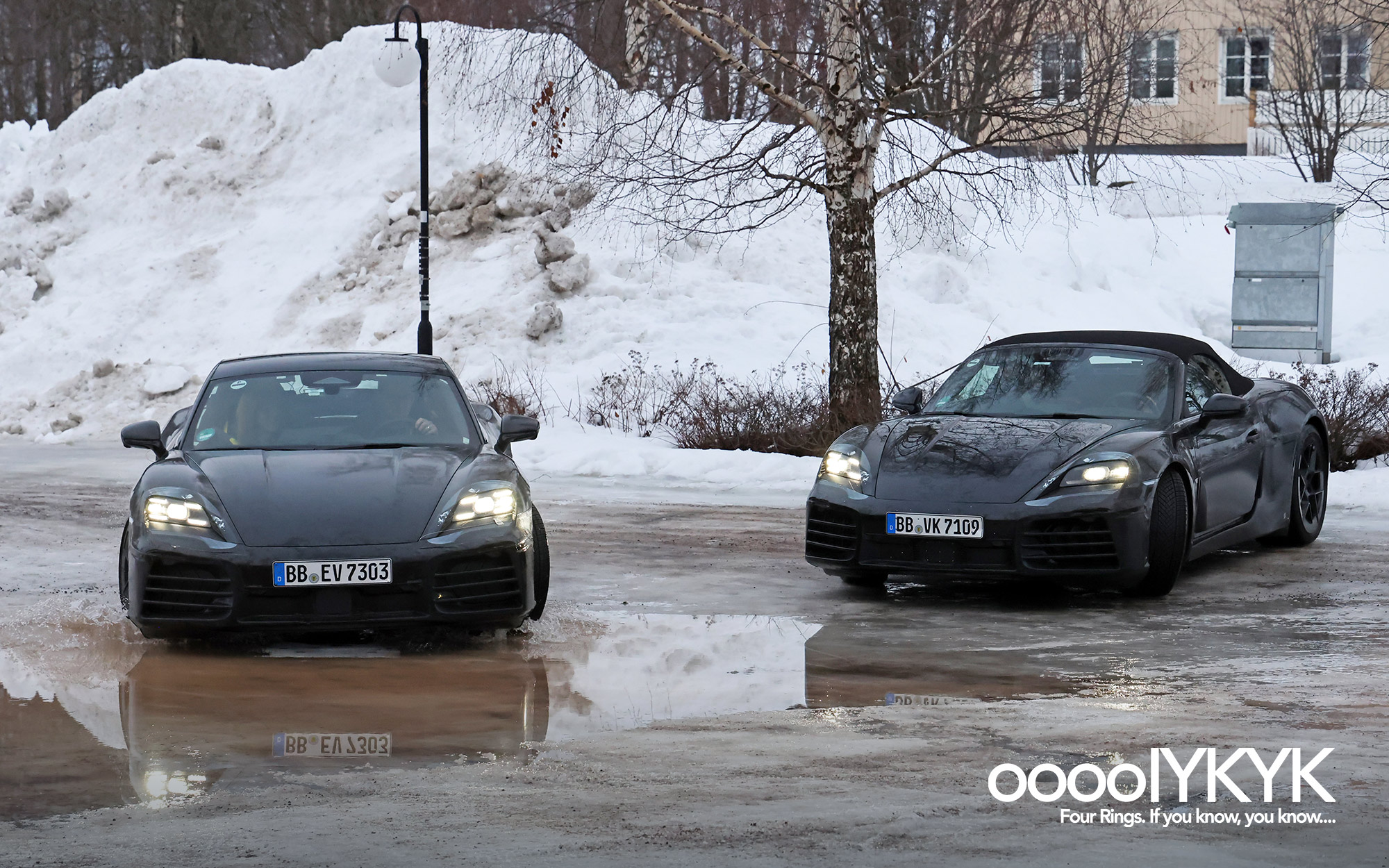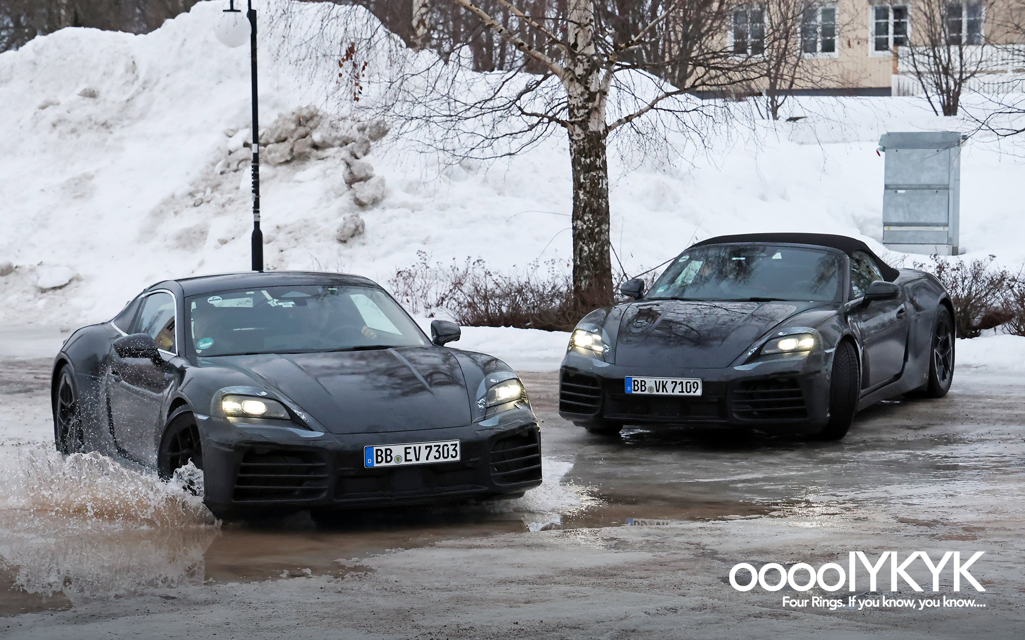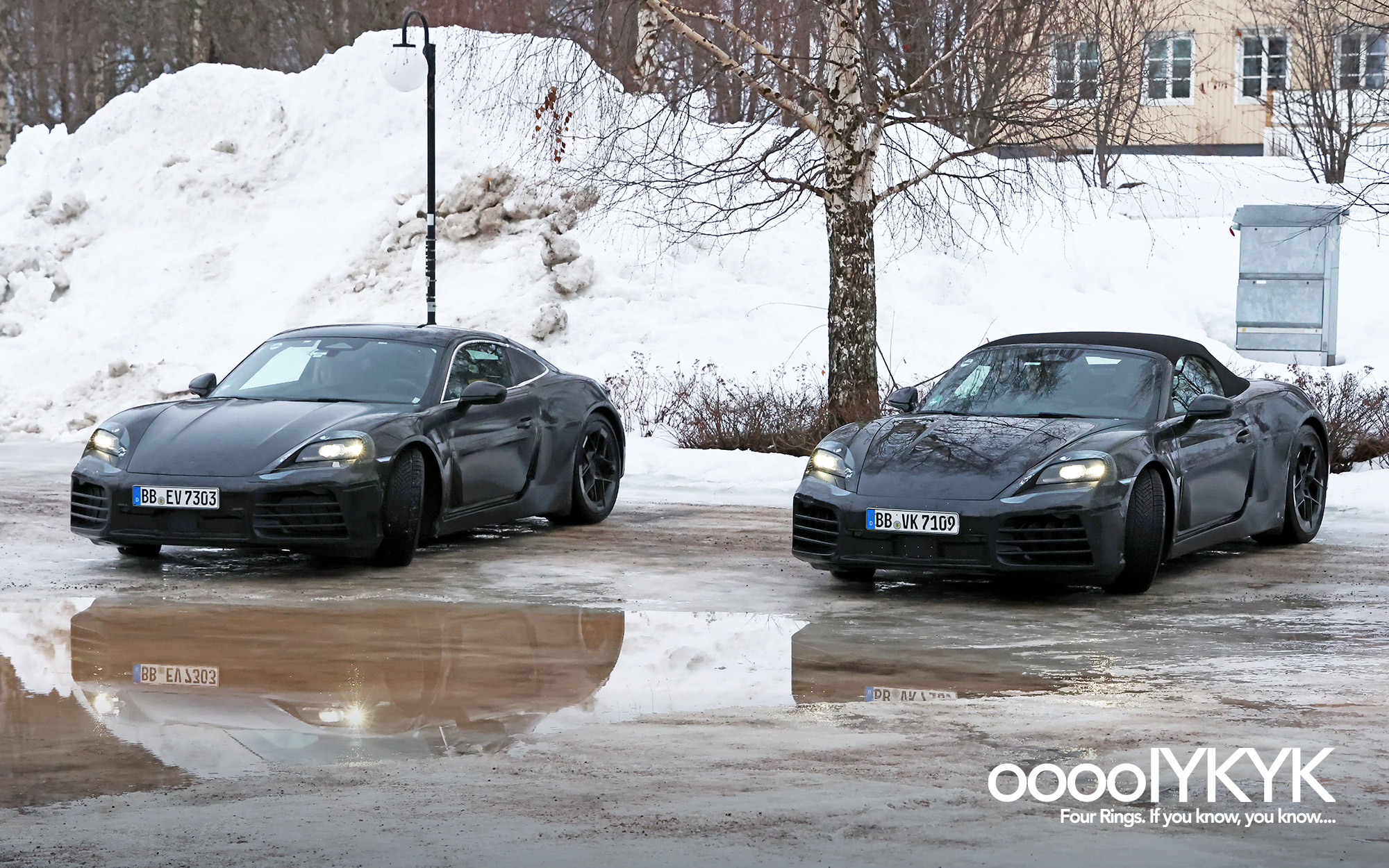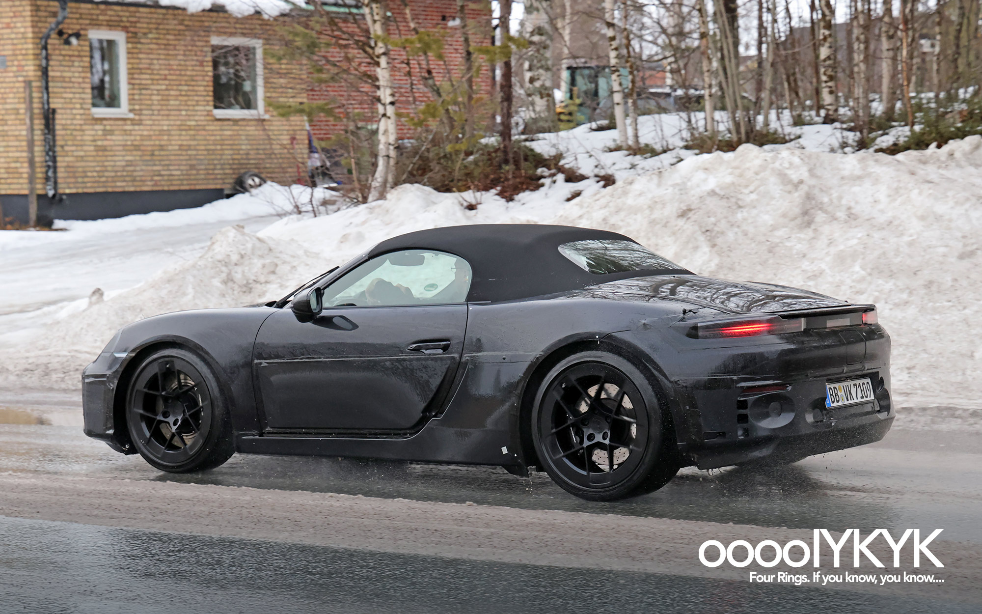 - Spy photos show Porsche 718 Boxster EV test mule wearing Ingolstadt registration tags “IN S3490E”, suggesting this test mule is registered at Audi’s factory in Ingolstadt.
