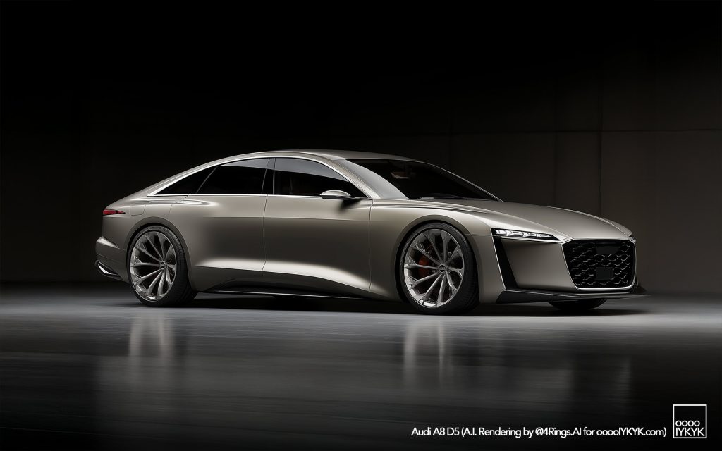 Clearly distinct in that design is the grille and light shaping, not to mention the wrapped lower fascia design. While some designers are already playing with expanding how that design language might be seen (see Reimagining Audi Clarity), getting an A.I. image tool to do the same, trained as it is on current design language, is a challenge.
