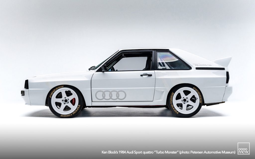 Among the standout features for Audi enthusiasts will be two quattro legends that recently departed the Petersen Automotive Museum: Ken Block’s “Turbo Monster” Sport quattro replica and DirtFish’s Audi Sport quattro S1 E2 Group B rally car. Both cars represent the era of the Audi brand’s rally dominance and enduring design language. Block’s white Sport quattro tribute will headline a special 43 Institute display honoring his legacy, alongside icons like the Hoonicorn RTR V2 and Gymkhana ONE Subaru WRX STi.
