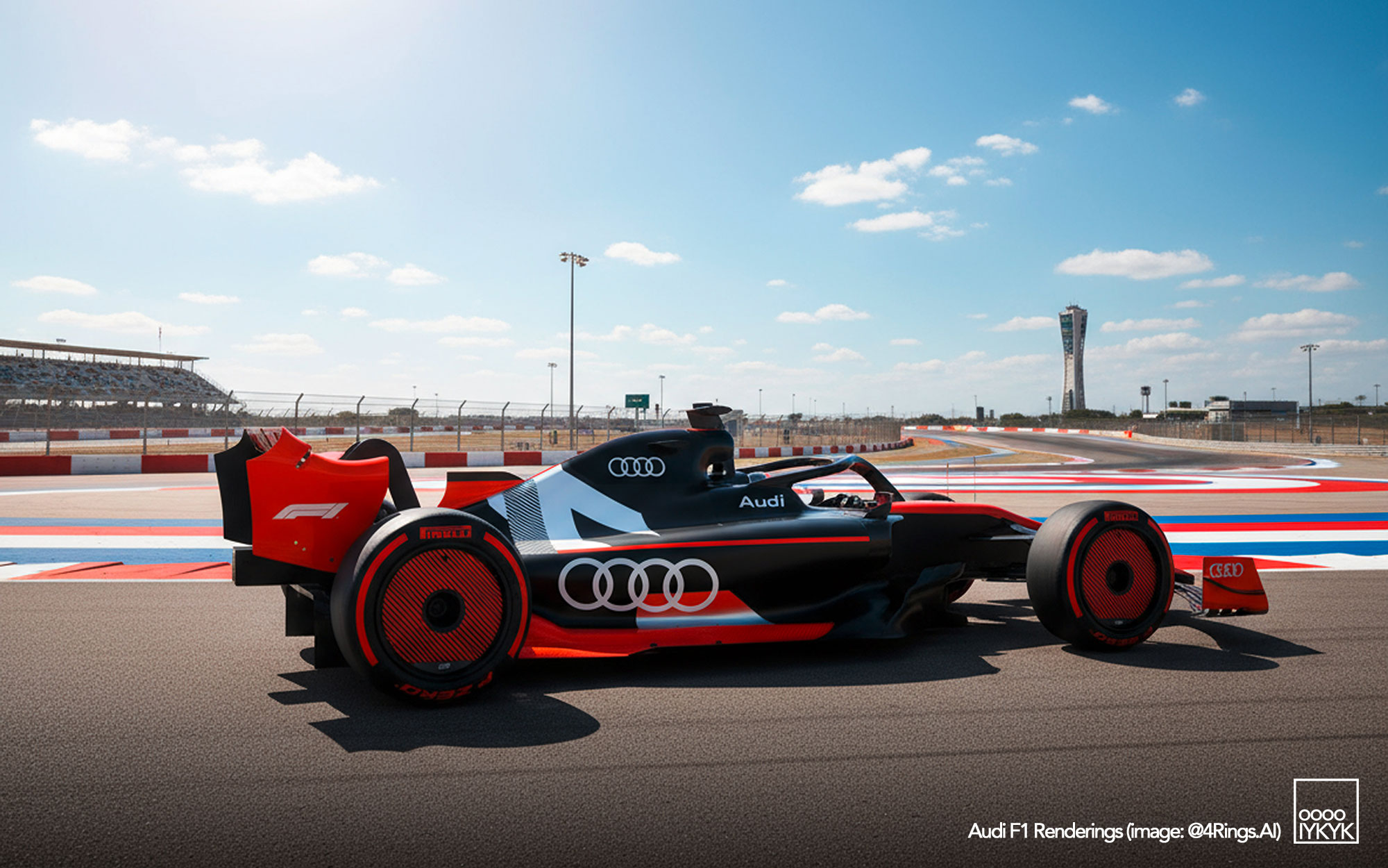 The idea behind this photo set was to create imagery celebrating the U.S. Grand Prix. In an effort to keep things as true-to-life as possible, I used Audi’s existing F1 show car as the visual reference — a model with plenty of documented imagery. Audi will undoubtedly update the design of its cars ahead of next season, as the current livery dates back to 2022 — practically an eternity in F1 design terms. Even so, using it as a reference point helps reduce the number of liberties the AI might take — realism remains the goal.