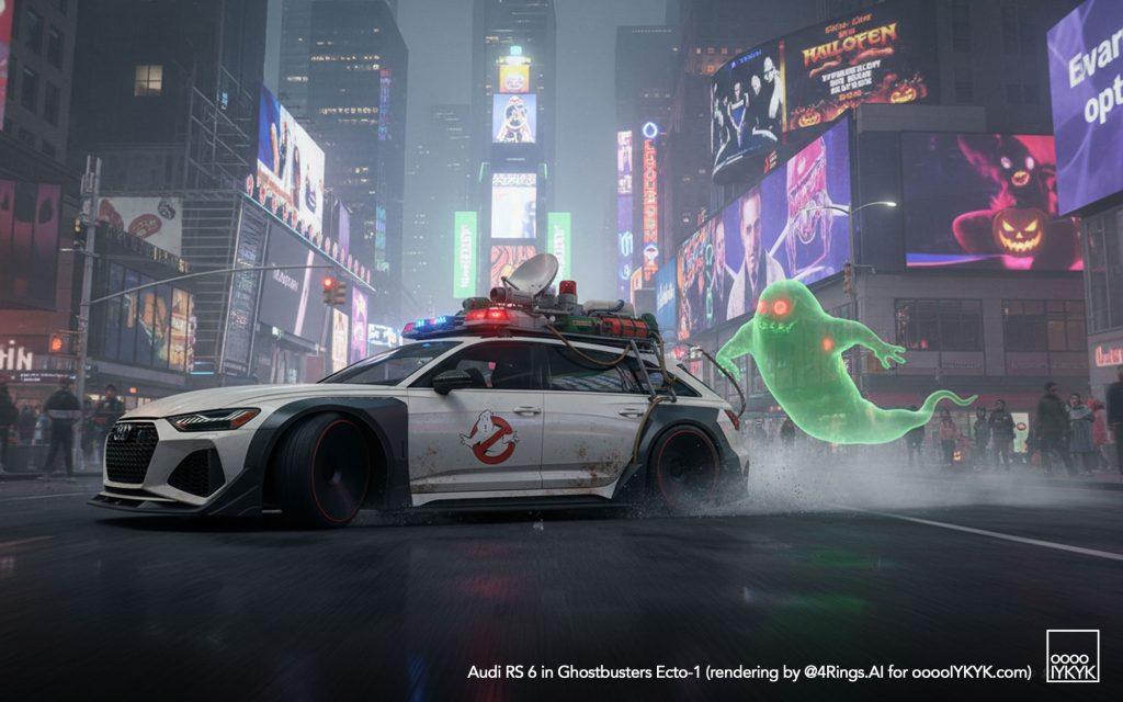In that time, I’ve chosen to be creative in use of AI image-generation. Themes have ranged from Jack-o-Lantern cars, to the Addams Family, then Addams Family at the Race of Gentlemen and also an Audi RS 6 Avant as the Ghostbusters’ ECTO-1.