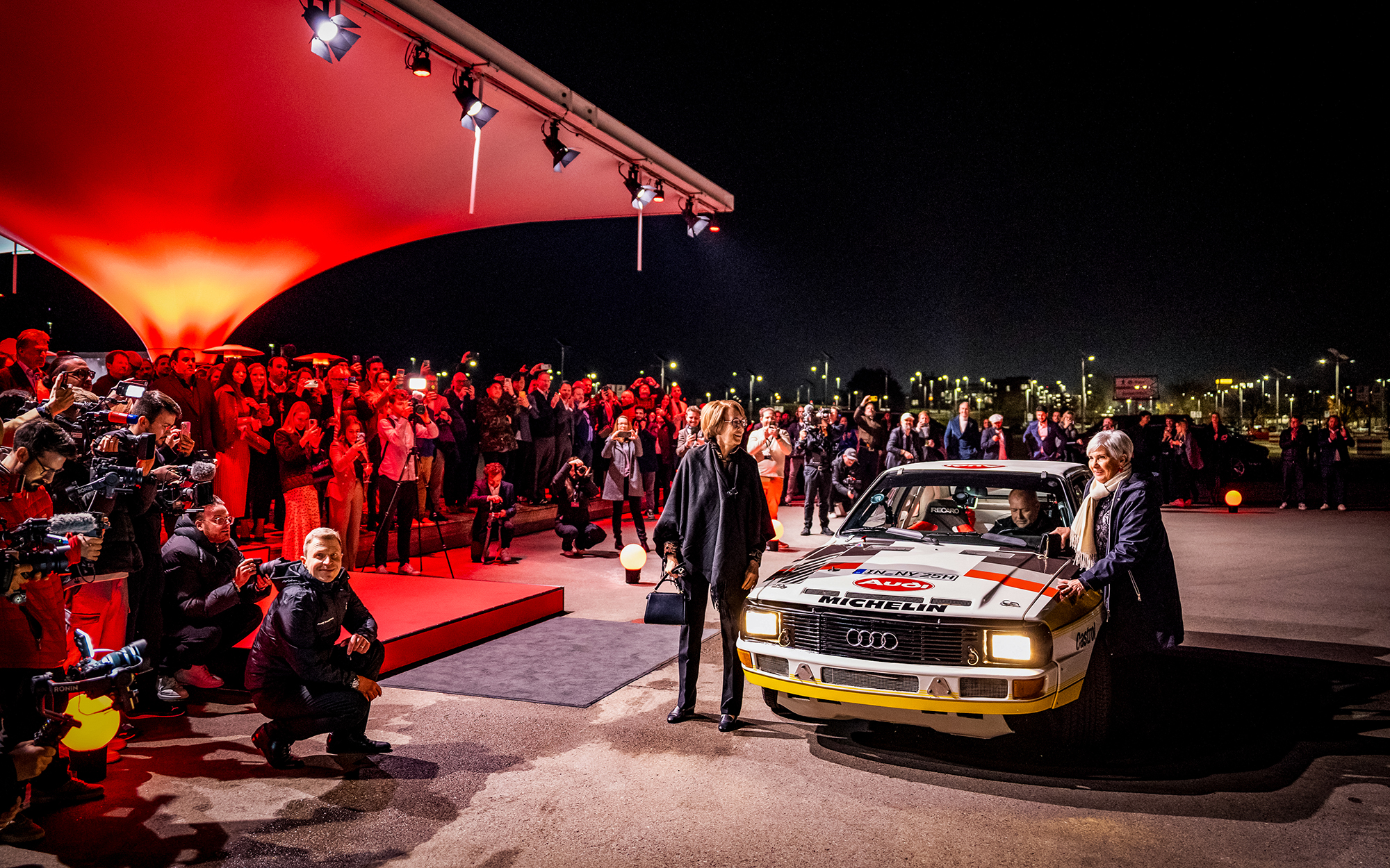 Rounding out the gathering, rally legends Stig Blomqvist and Harald Demuth reunited with the Audi quattro Rallye A2 — another cornerstone of the Group B age and a symbol of Audi’s impact on rallying.