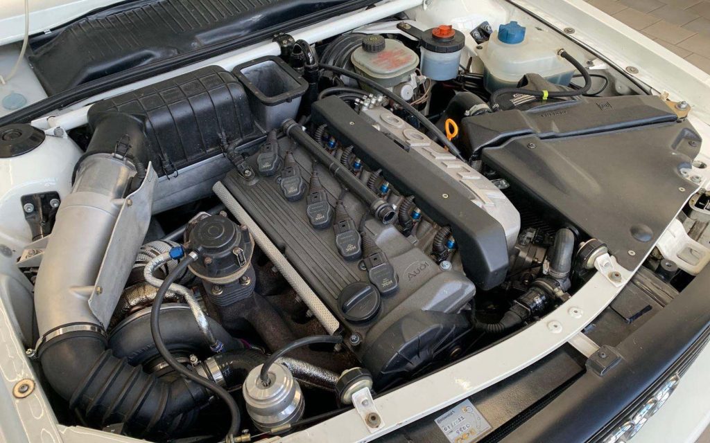 About the build, the owner states it was built with many “original Sport quattro parts”, with carbon fiber body parts by Koraszewski, which were painted Alpine White by Zinke in Jahnsdorf, Germany.