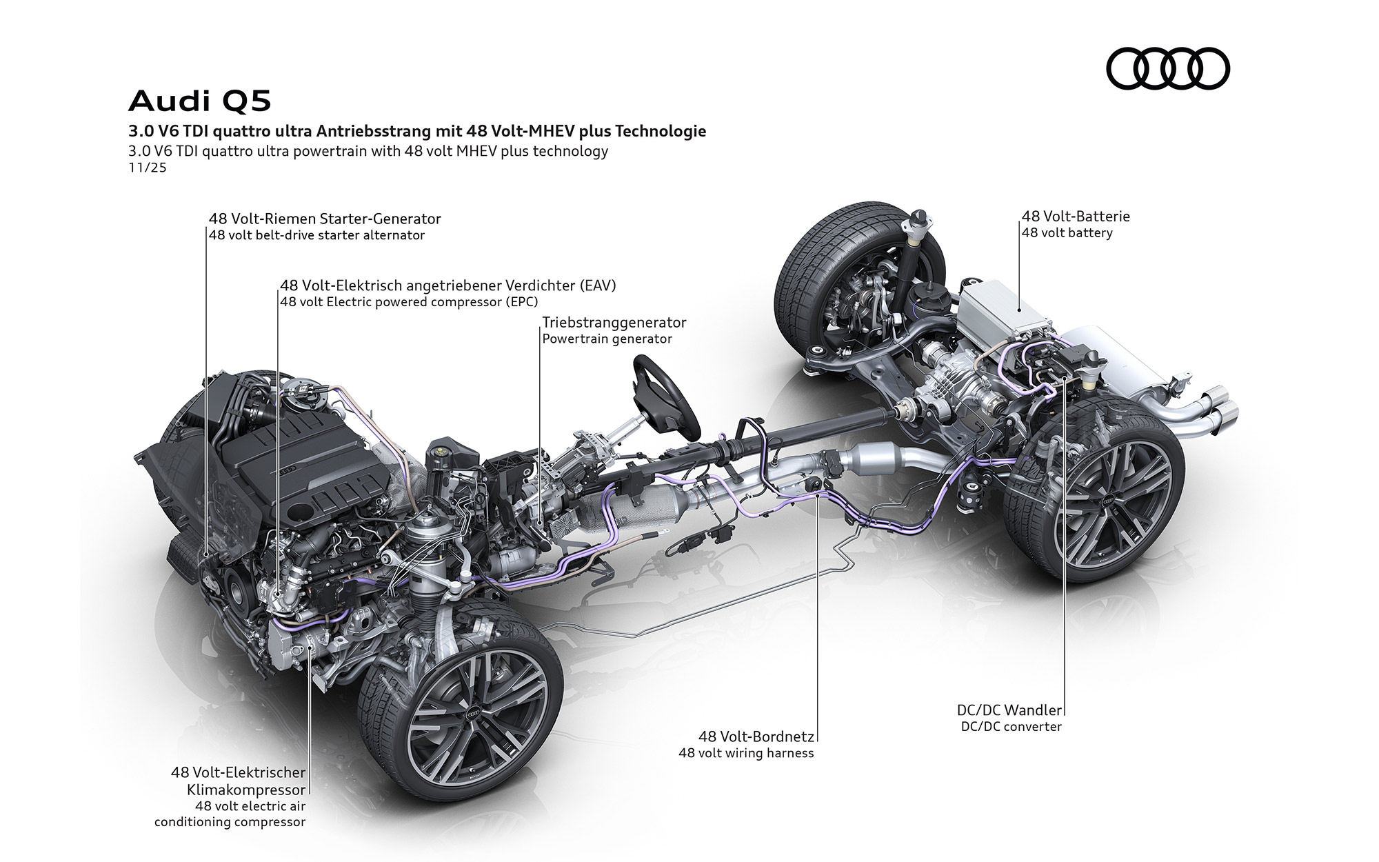 Audi has revealed a significantly updated evolution of its 3.0-liter V6 TDI (EA897evo4) — complete with more powerful electrically powered compressor (“electric turbo”) and an expanded mild-hybrid (MHEV plus) architecture — and it’s headed for the refreshed Q5 and A6 in Europe. This new setup blends diesel efficiency, electric torque-fill, and ultra-fast boost response into a drivetrain that feels closer to an electric motor in its immediacy than any diesel before it.