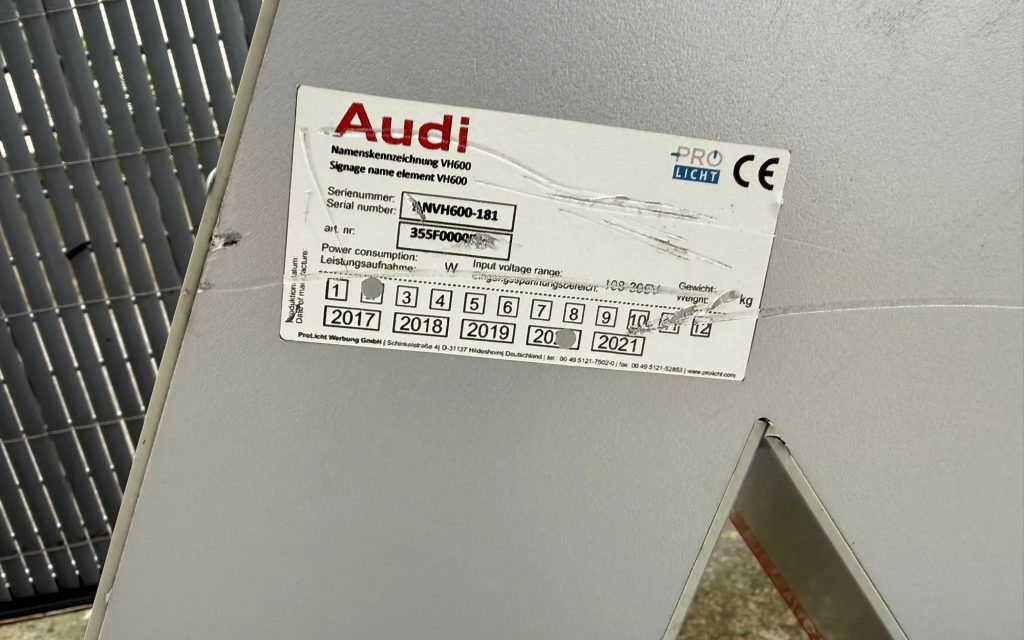 - Illuminated Audi signs with the classic four-ring brand logo and matching script, finished with LED illumination.