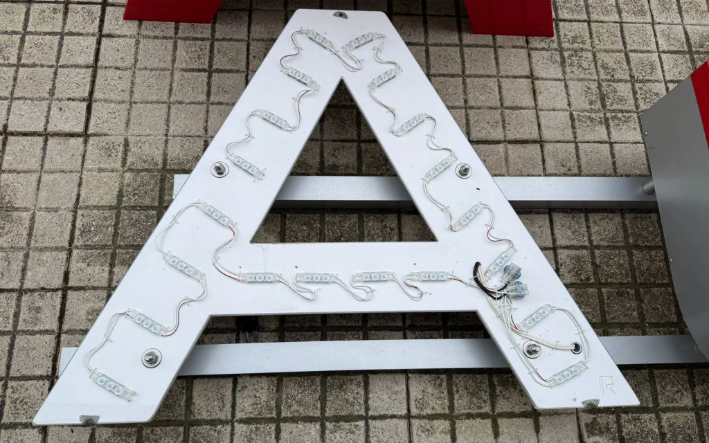 - The Audi rings unit measures approximately 95″ wide by 34.5″ tall by 6″ deep, while the letters themselves span roughly 92.5″ by 24″.