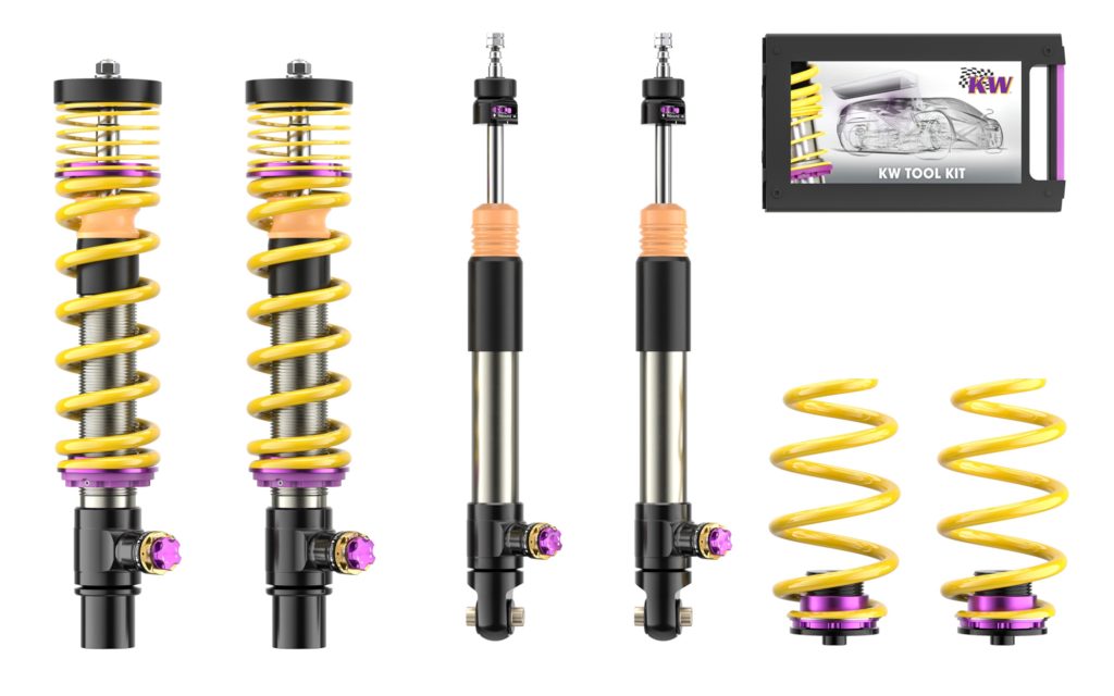From there, KW expanded into increasingly complex systems, including five- and six-way adjustable dampers, semi-active coilovers, hydraulic lift systems, and app-controlled suspension technologies. In 2017, the company introduced Solid Piston damper technology—derived from motorsport—which enabled significantly higher and more consistent damping forces by separating the working piston from the valve carrier.