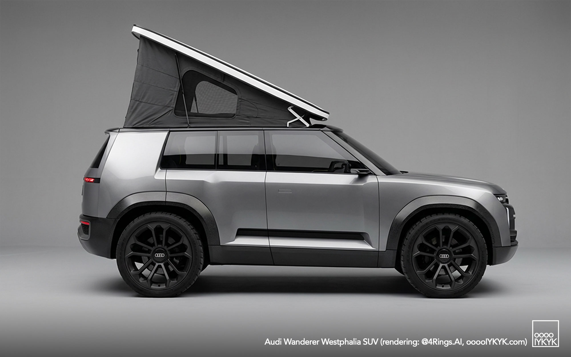 If Audi is to build such a vehicle, named Wanderer or not, I think they’d do well to think more out-of-the-box than to make a 5 or 7 passenger SUV with Scout’s confirmed capabilities thanks to serious planned off-road hardware. They need to go further. A #vanlife friendly Westphalia pop-top camper definitely moves the needle. So would a creative take on rear seating like swiveling captains chairs or second and/or third row that fold flat for stacked sleeping quarters.