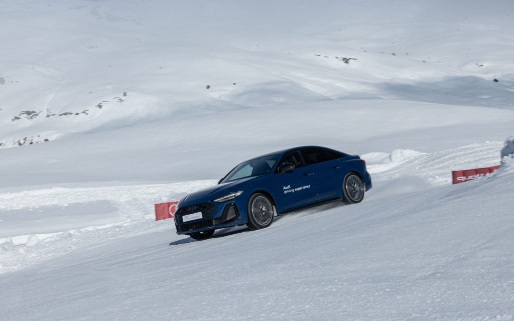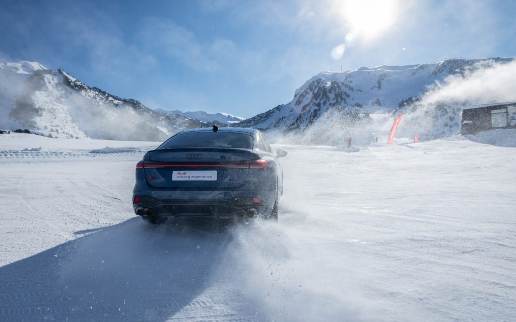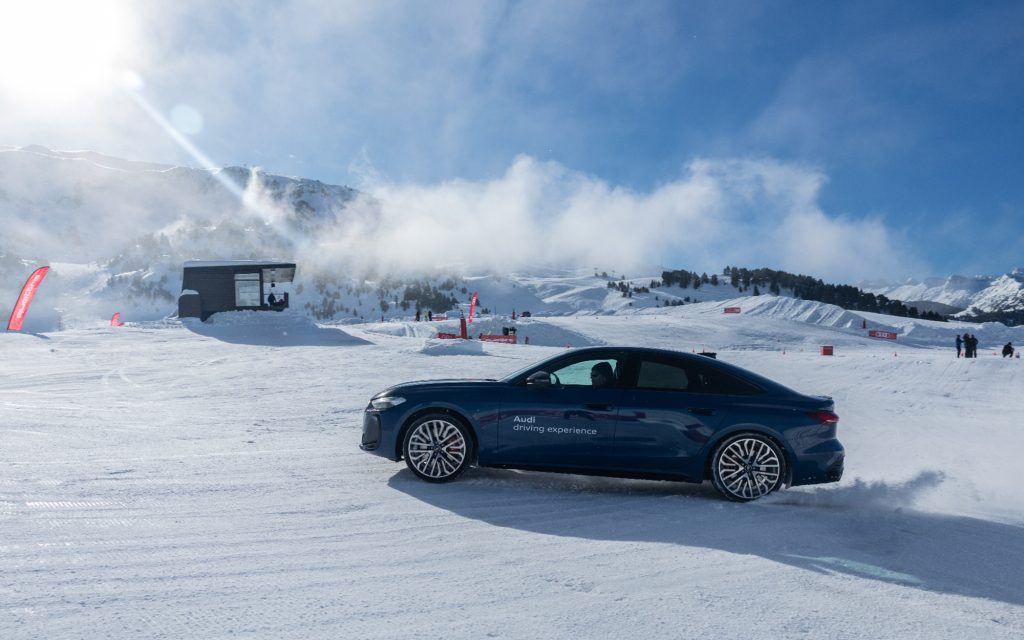 The experience then shifted from skis to steering wheels at the Audi Snowpark in Beret. There, participants tackled a purpose-built snow circuit featuring tight cornering and technical obstacles designed to test balance, throttle control and traction management.