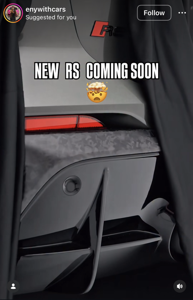 What we do know is that several European influencers including our friend @auditography did get early access to the car. We’re seeing socials begin last night and continuing throughout the day all revealing a few key details such as new italic RS badge at the front, partial italic RS badge at the back and the wheel design.