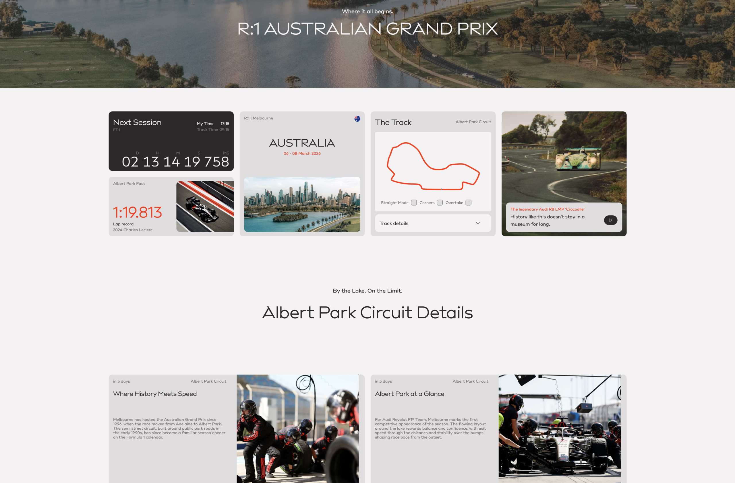 The Audi Revolut F1 Team’s official website AudiF1.com is showing off new race-specific sub-section for the Australian Grand Prix that makes for a handsome and informative quick-reference that will keep Audi F1 fans up-to-date on the upcoming Grands Prix.
