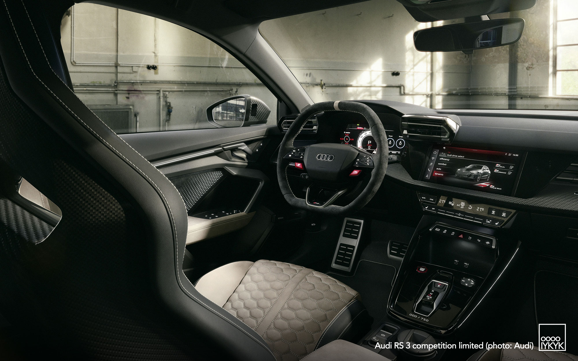 Inside, the RS 3 competition limited adopts a distinctive color palette of black, Neodymium gold and Ginger white.