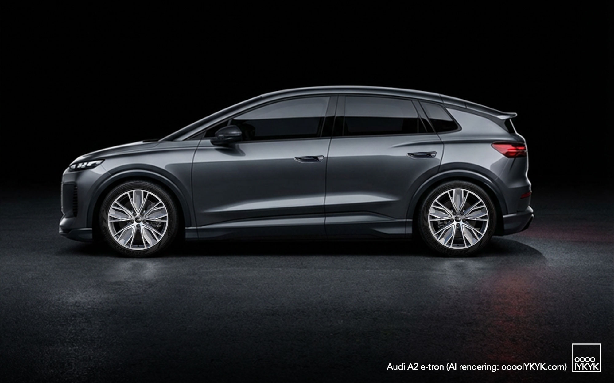 One of the stories I reviewed for this series was Autocar’s own reaction to the teaser above. In that, they ran a quick AI rendering of the new A2 based on the simple profile view revealed of the car. It was a brilliant move you should check out. Given my own adoption of AI image generation and previous work with renderings, I decided to make my own. The net effect is similar, though I’ve aded a few key updates like updated brand door handles seen on the current A5 family and aerodynamic wheels from the A5 hybrid. The wheels won’t be the same as the A2 based on what we can see in the images when we pull some shadow from them, but they are handsome enough and made the car just a bit more production realistic.