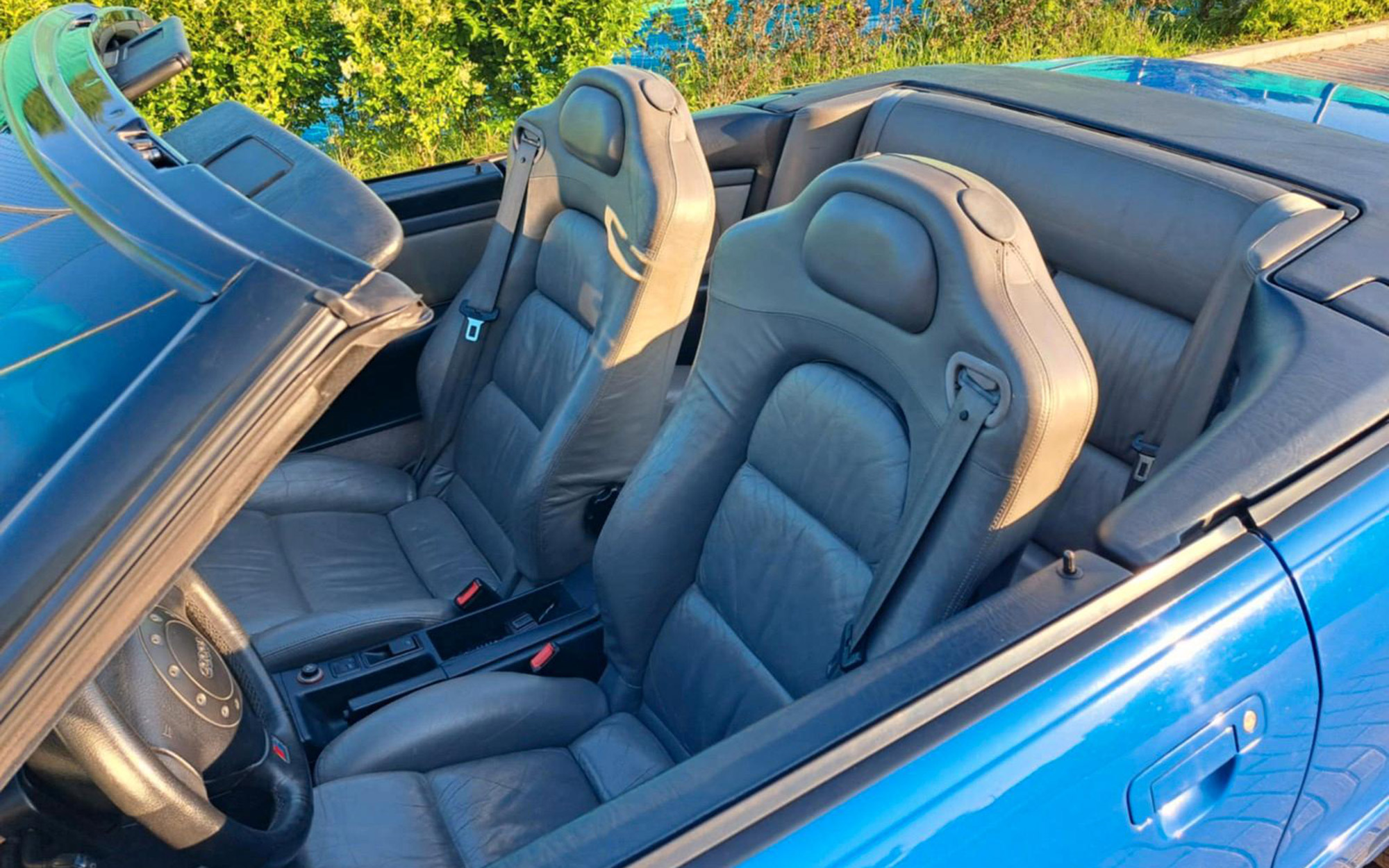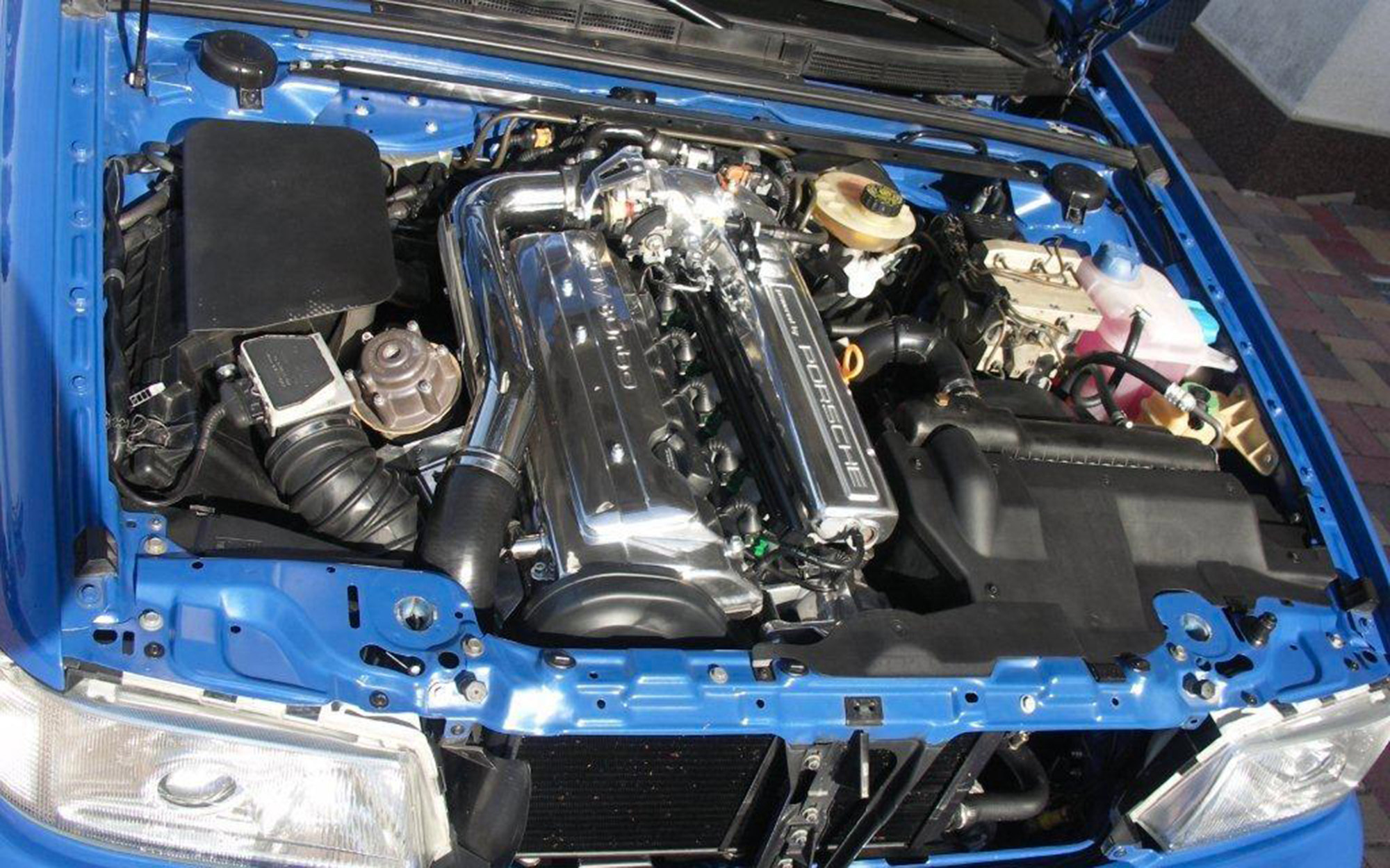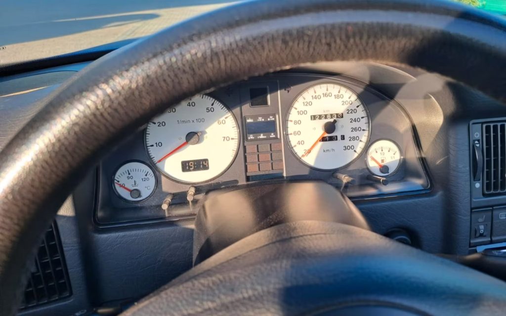 More important is what components made their way to the car during the conversion. Here, the ad lists an original RS2 engine with its iconic “Powered by Porsche” valve cover – albeit polished. It was completely painted in RS Blue (now known as Nogaro Blue).