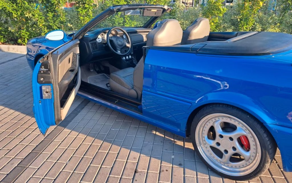 Here’s what we know based on the car’s listing over on European car classifieds site Mobile.de. The car was built on the chassis of a 1997 Audi Cabriolet converted to RS2 specification. That restoration was completed in 2009 when the car was registered as new.