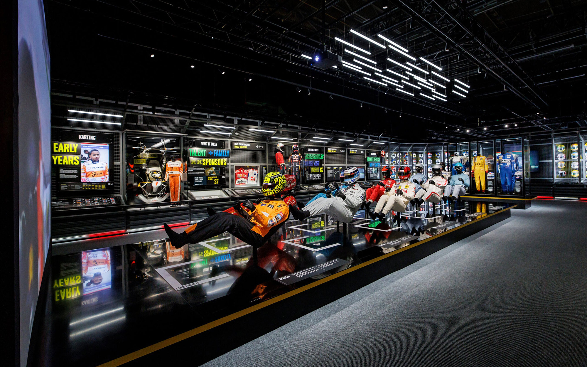 Set within Munich’s Pineapple Park, the exhibition spans roughly 3,000 square meters and is structured as a walk-through narrative of Formula 1’s past and present. Visitors move through themed rooms covering the sport’s defining eras, technical revolutions, and cultural impact, supported by archival footage, photography, and interactive installations.