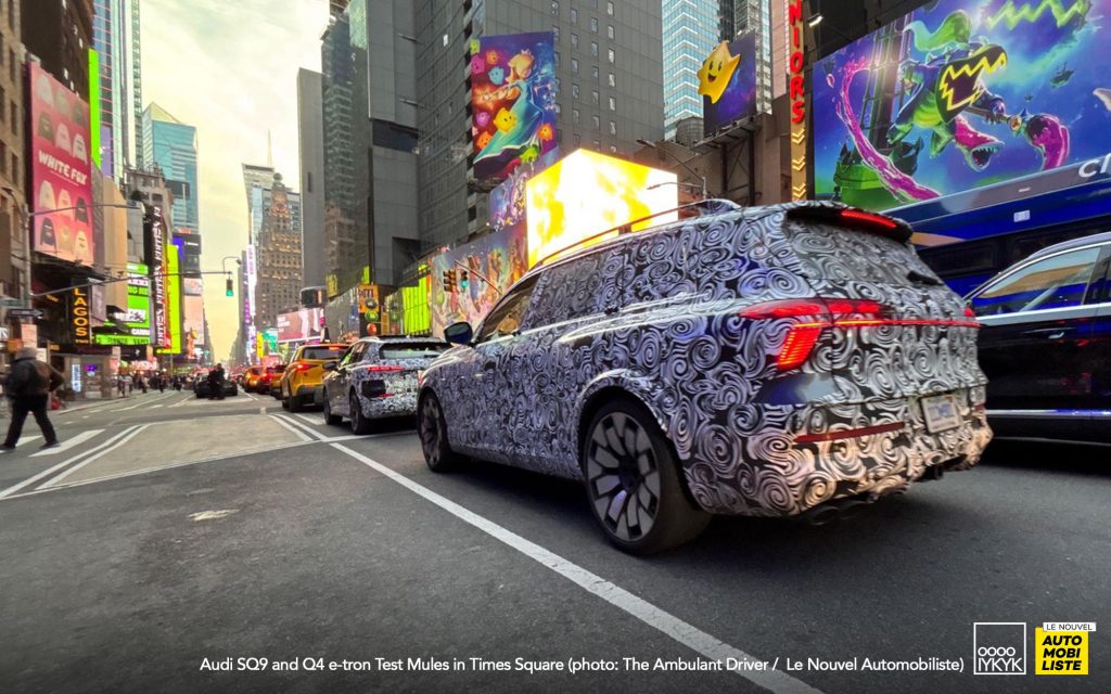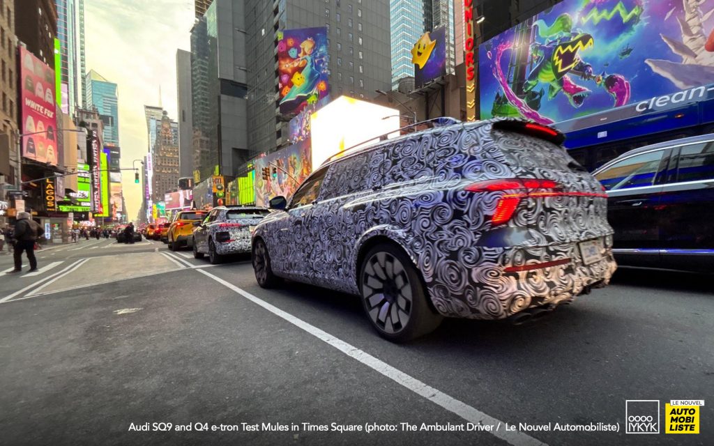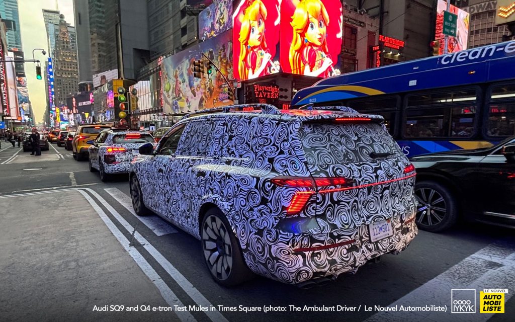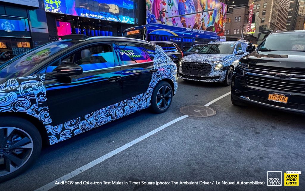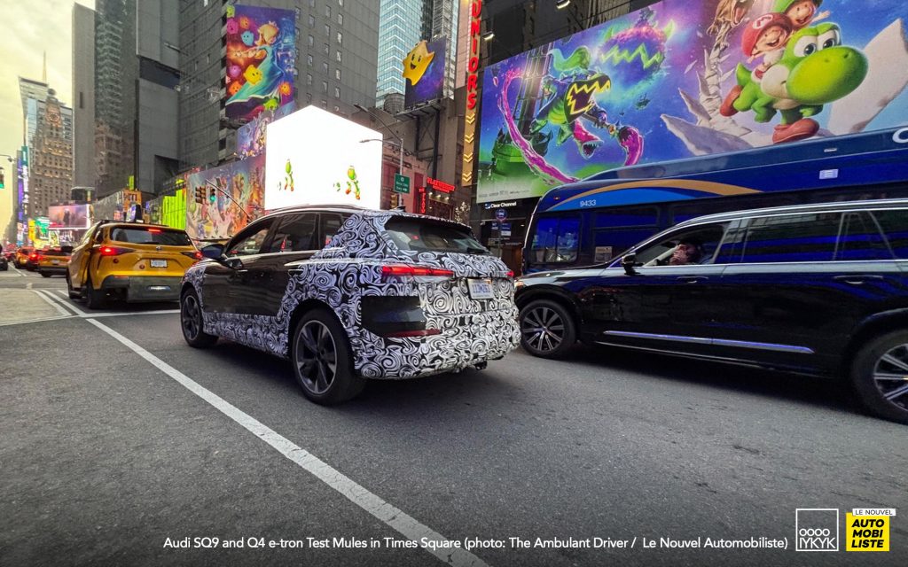 Spied: Audi SQ9 & Q4 e-tron Test Mules Appear in Times Square During NY Auto Show Week
