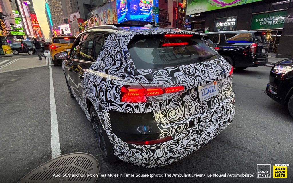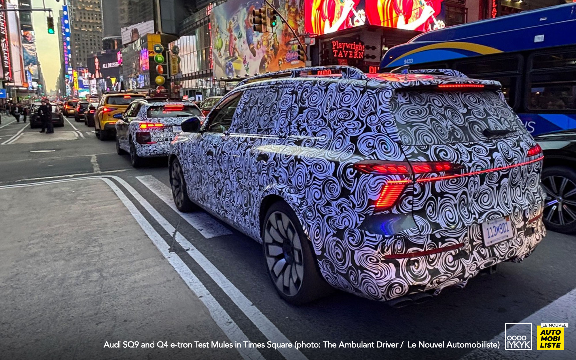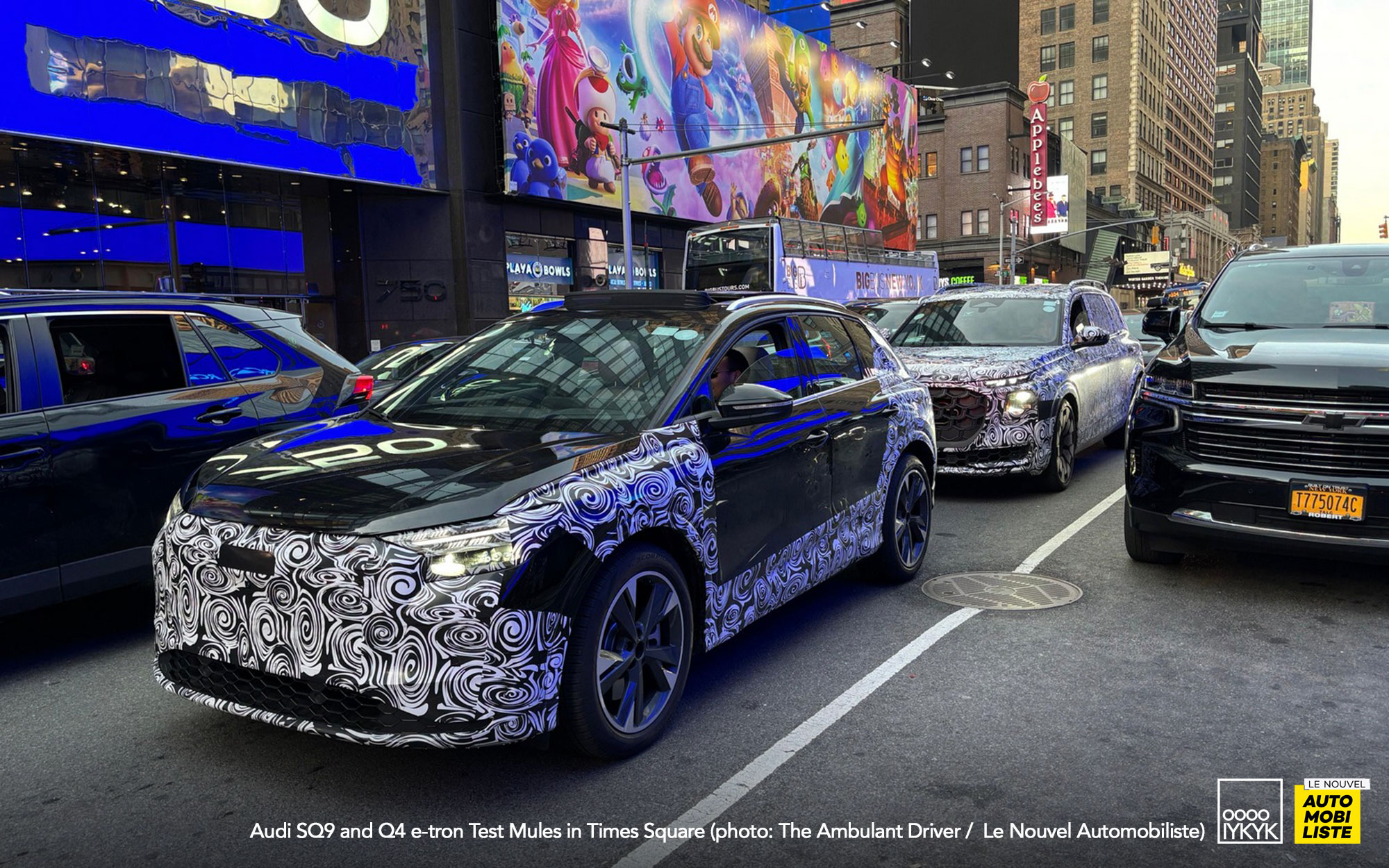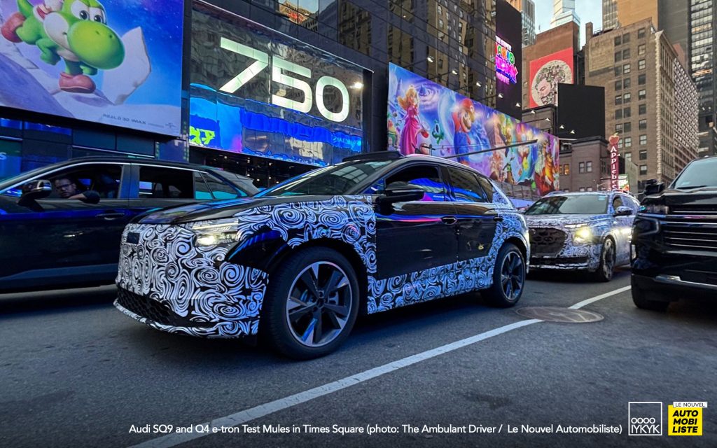 Spied: Audi SQ9 & Q4 e-tron Test Mules Appear in Times Square During NY Auto Show Week